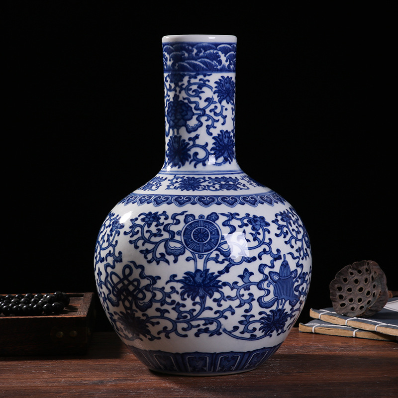 blue and white interlock branch lotus celestial globe vase (32cm)