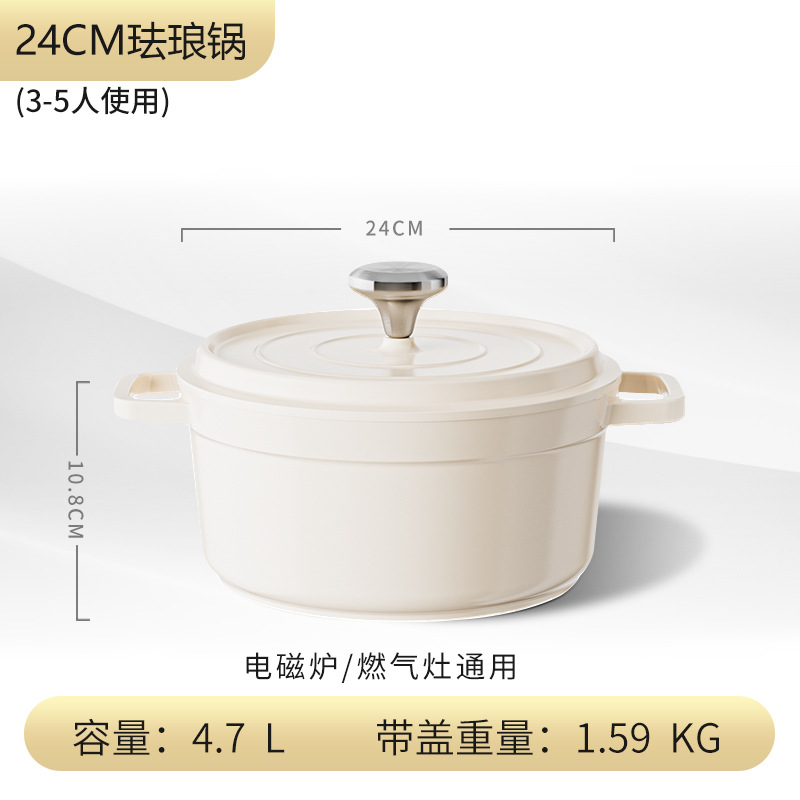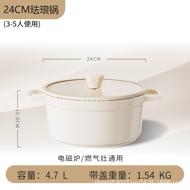 white 24cm medium enamel pot + metal cover
