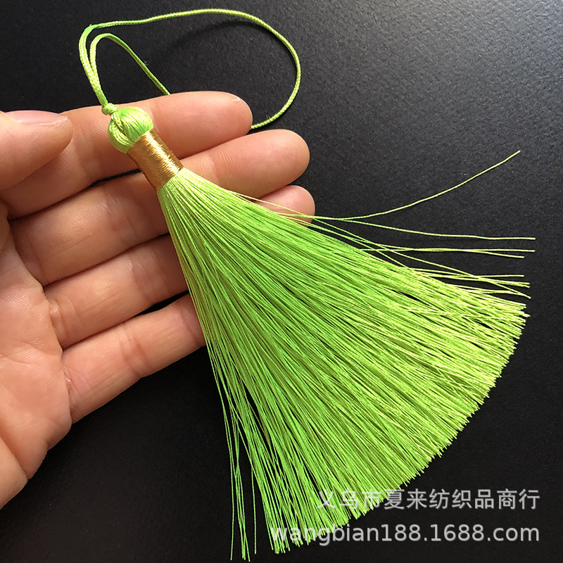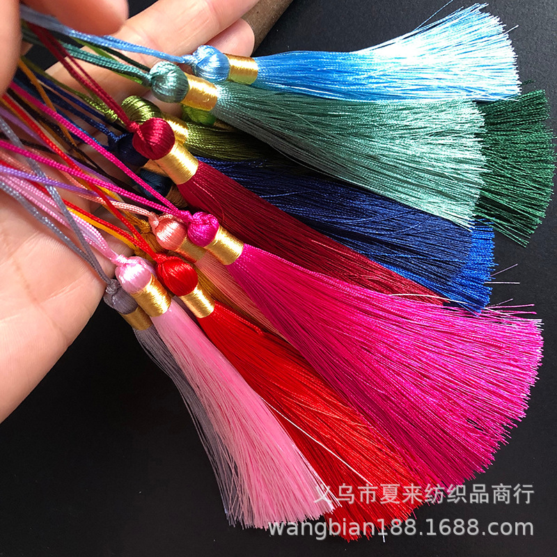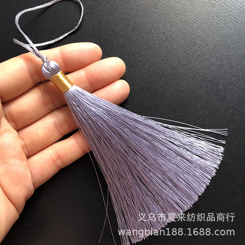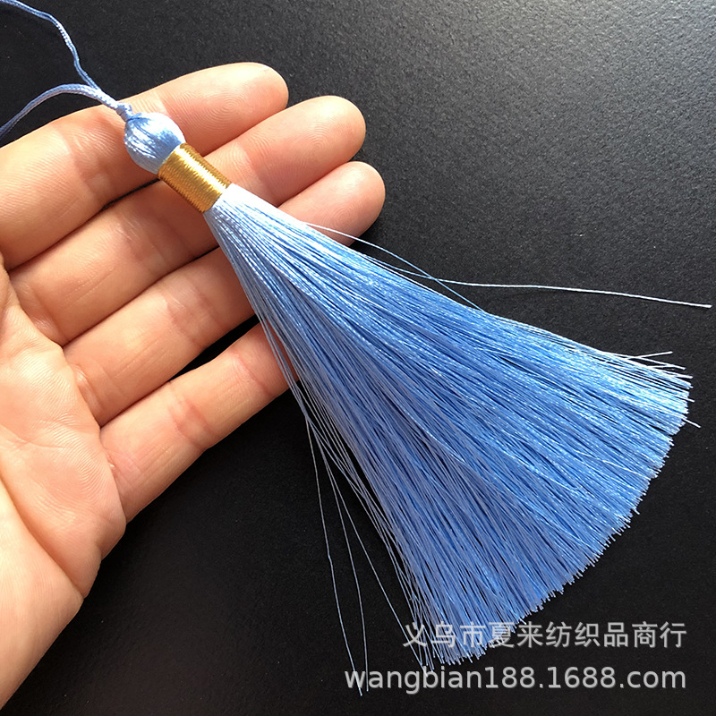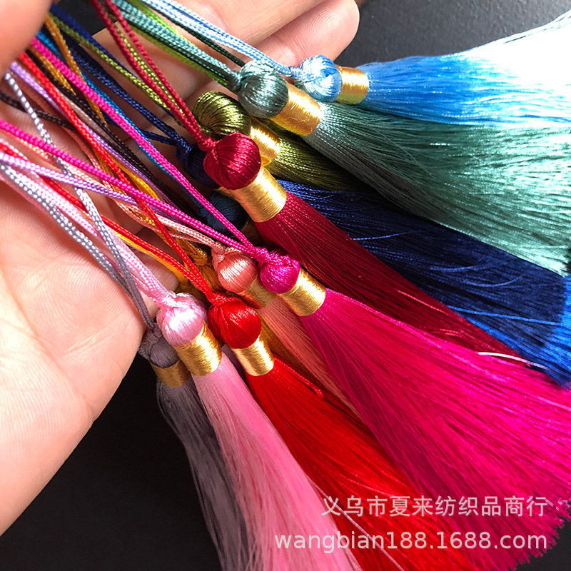 This tassel is suitable for use in gift decorations such as clothing, bookmarks, hair brushes, fans, packaging boxes, car hangings, incense bags, sachets, and crafts. It is made of ultra-straight fiber and ice silk material.