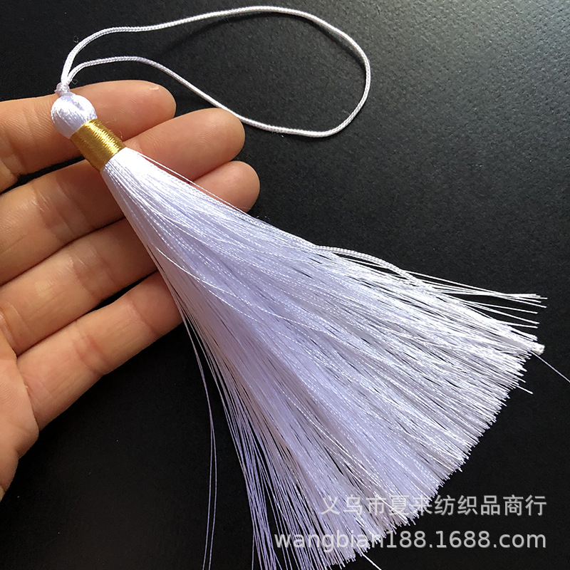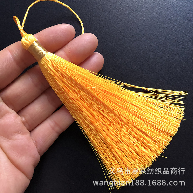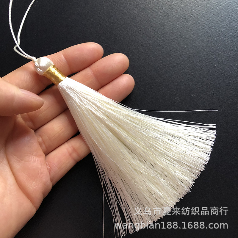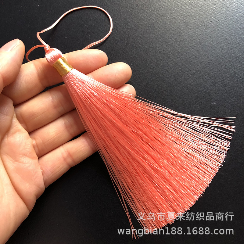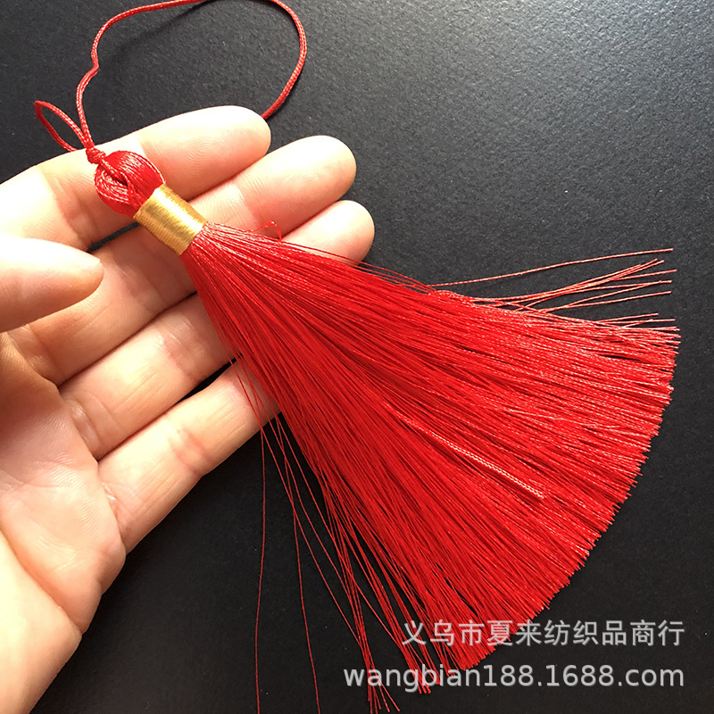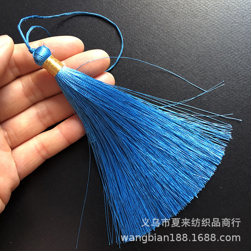 This tassel is suitable for use in gift decorations such as clothing, bookmarks, hair brushes, fans, packaging boxes, car hangings, incense bags, sachets, and crafts. It is made of ultra-straight fiber and ice silk material.