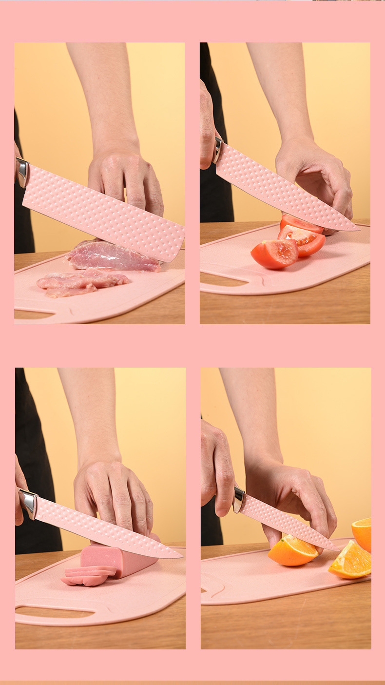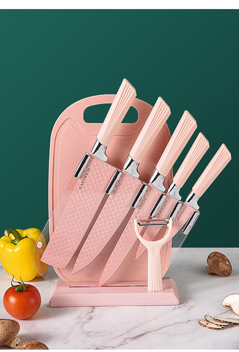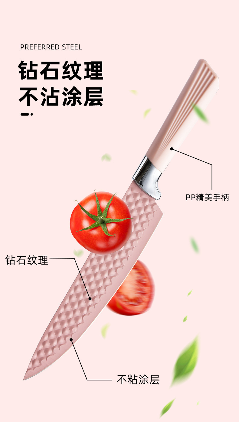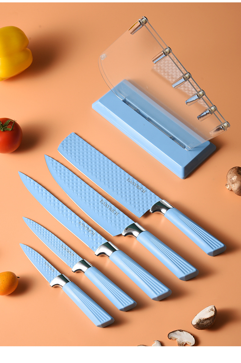 stainless steel embossed non-stick knife chef knife gift box set diamond pattern kitchen knife 7-piece set