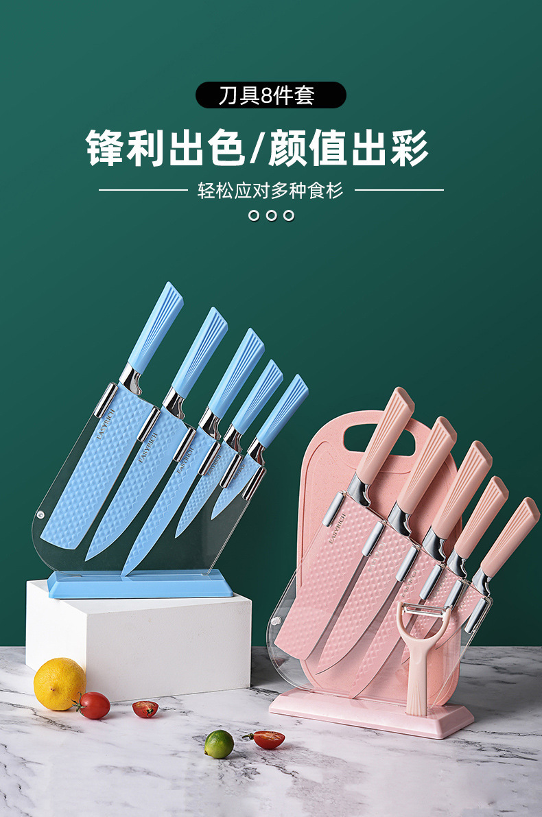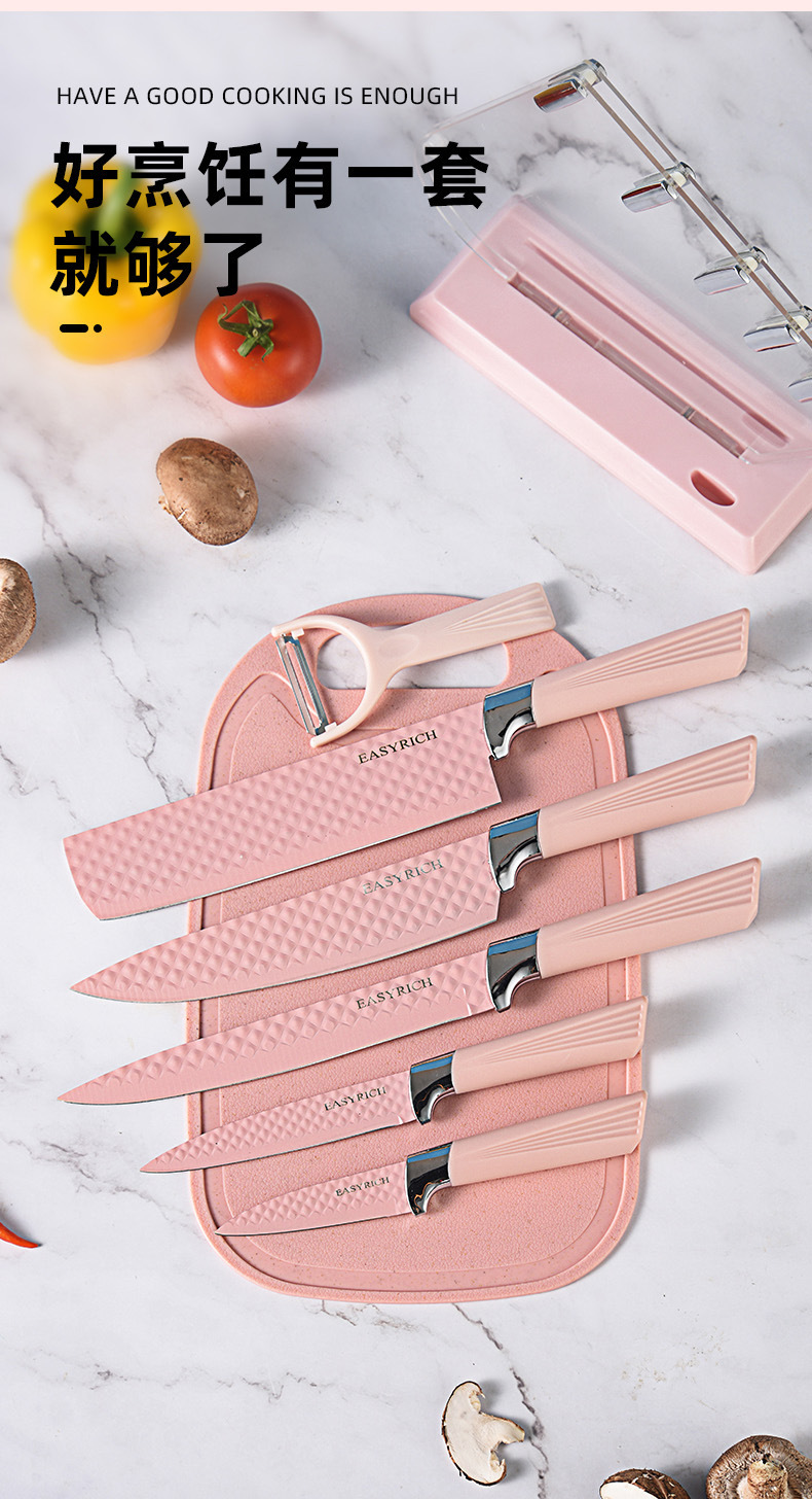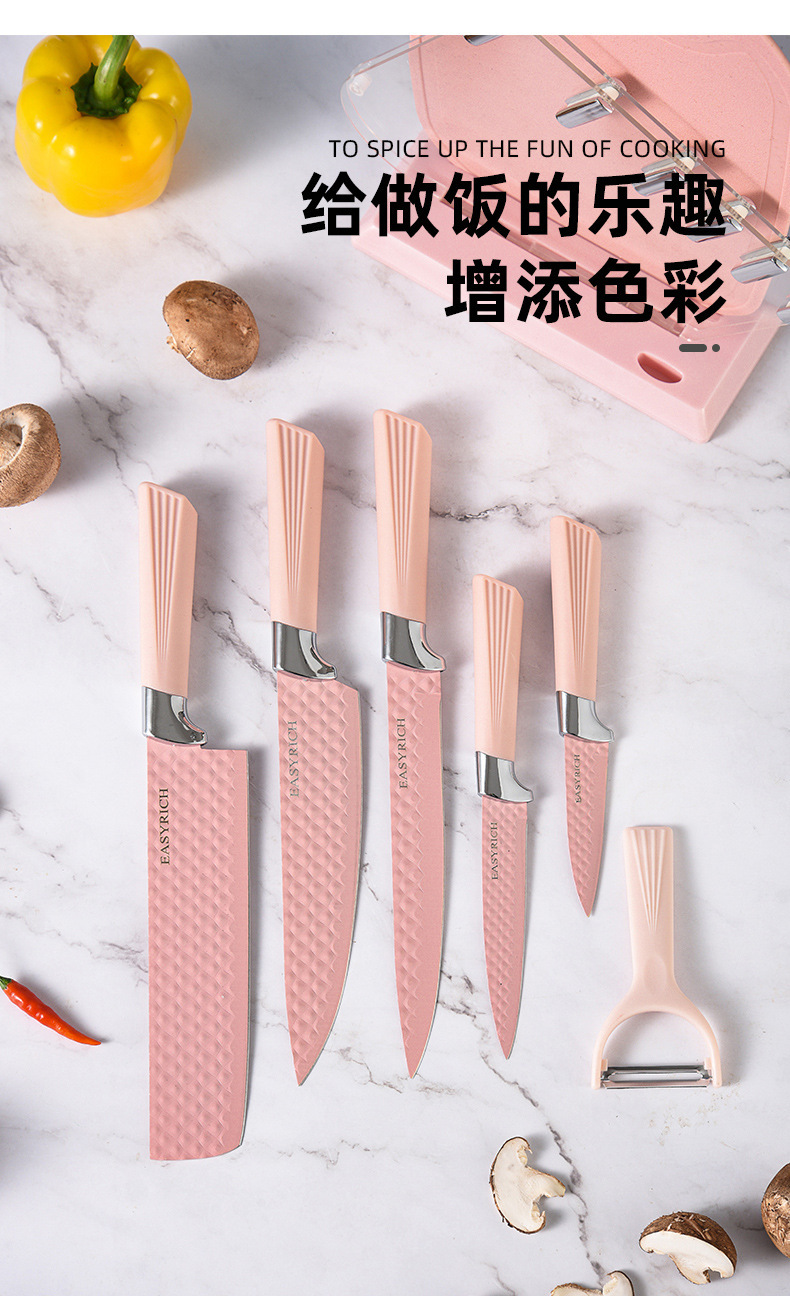stainless steel embossed non-stick knife chef knife gift box set diamond pattern kitchen knife 7-piece set