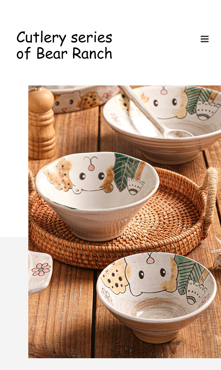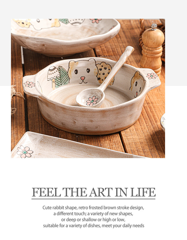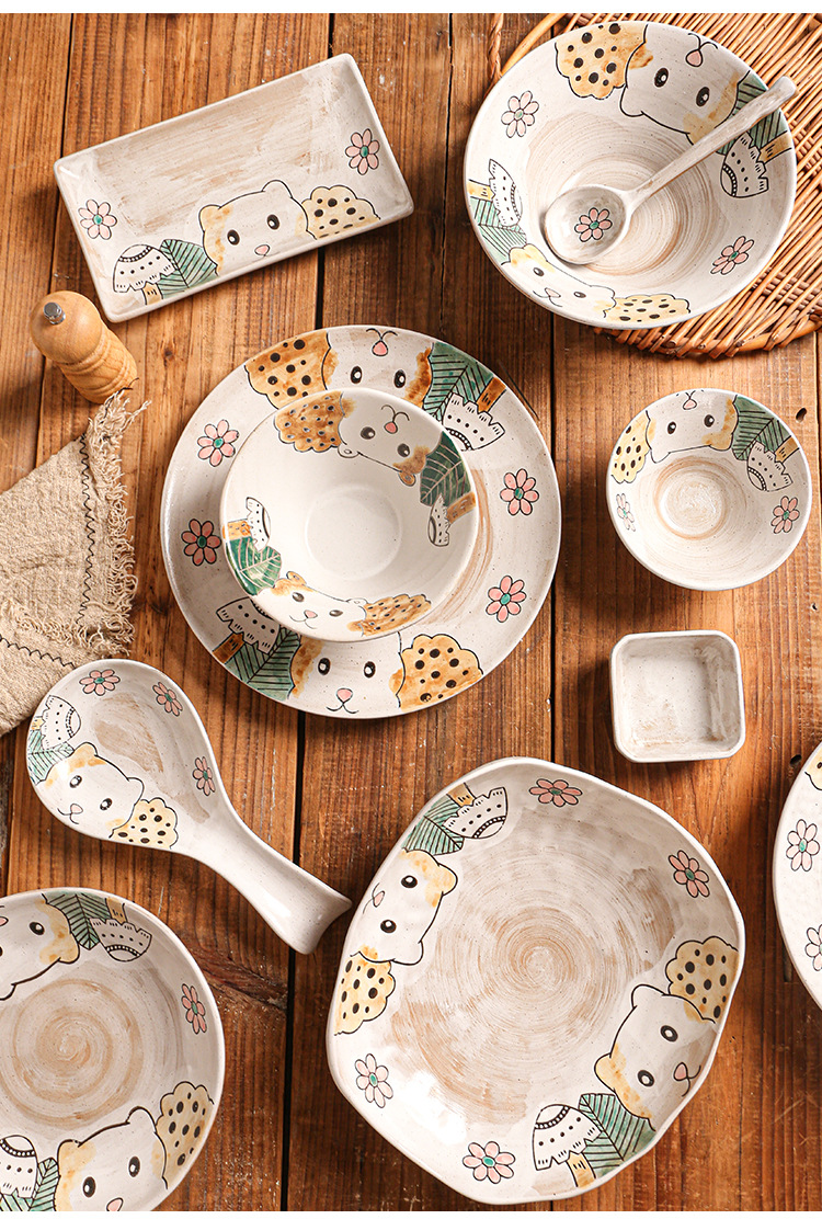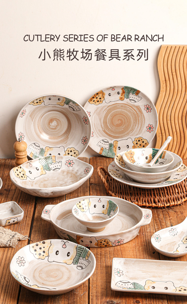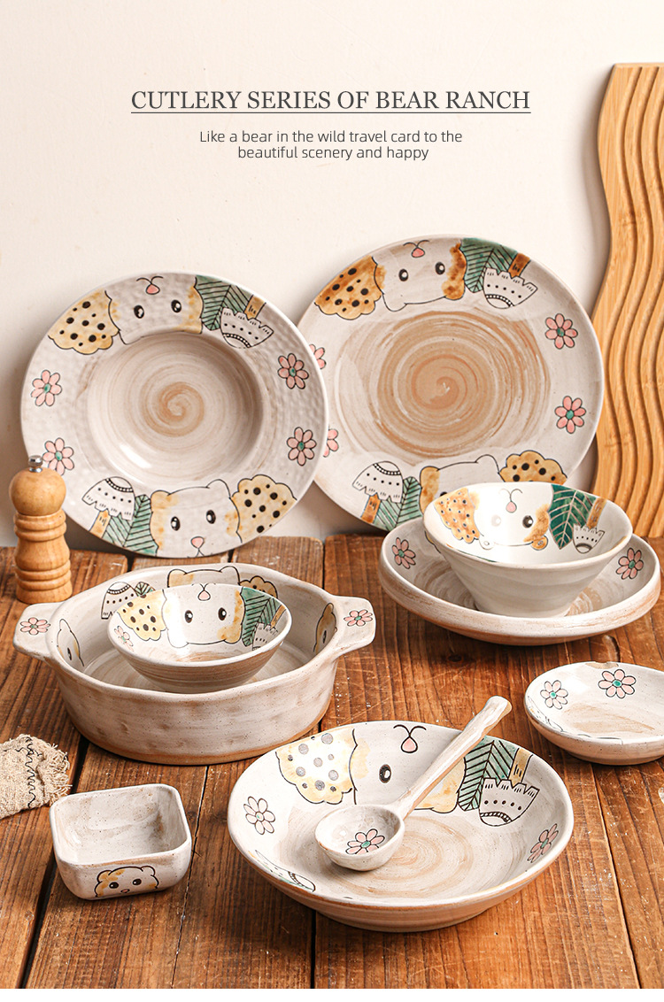 hand-painted clay bear ranch underglaze ceramic rice bowl plate three-dimensional oil painting tableware bowl and dish gift set