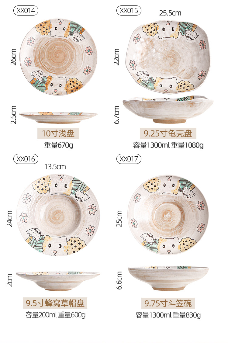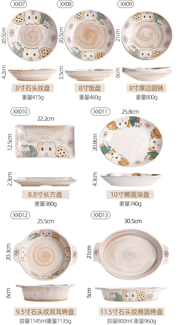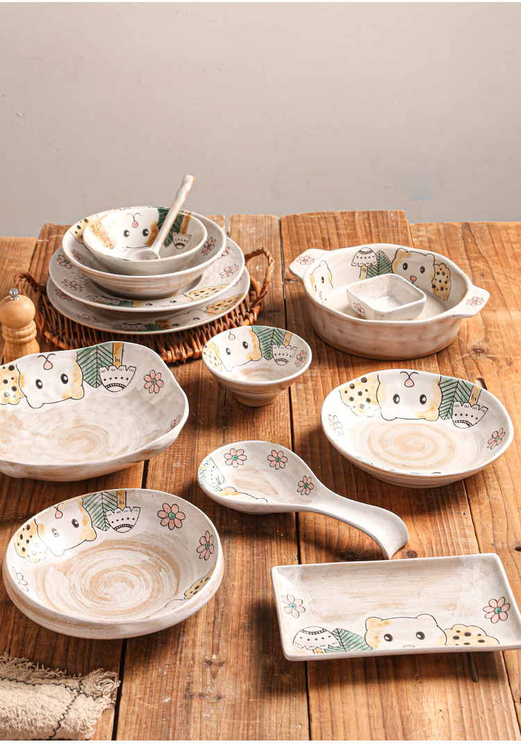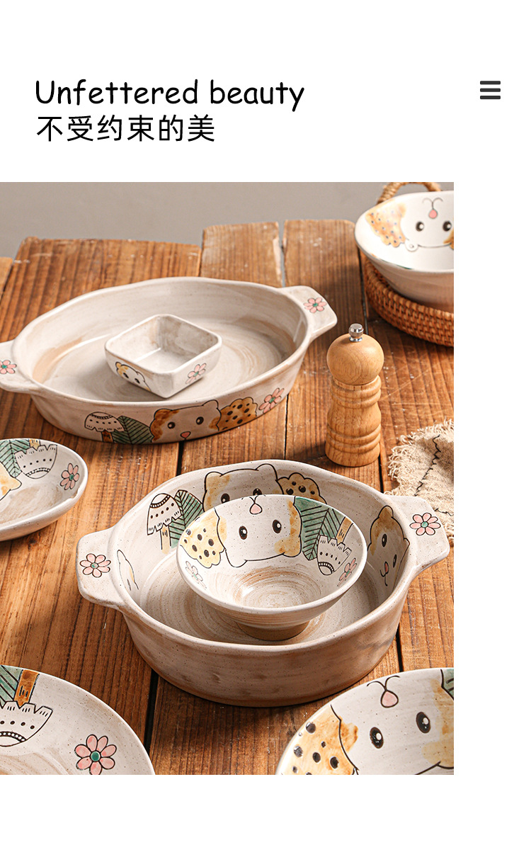 hand-painted clay bear ranch underglaze ceramic rice bowl plate three-dimensional oil painting tableware bowl and dish gift set