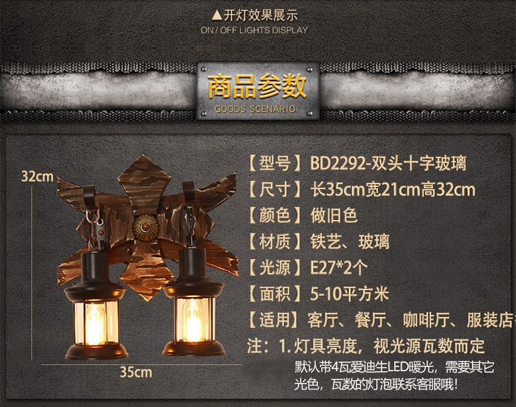 double head glass + with led bulb