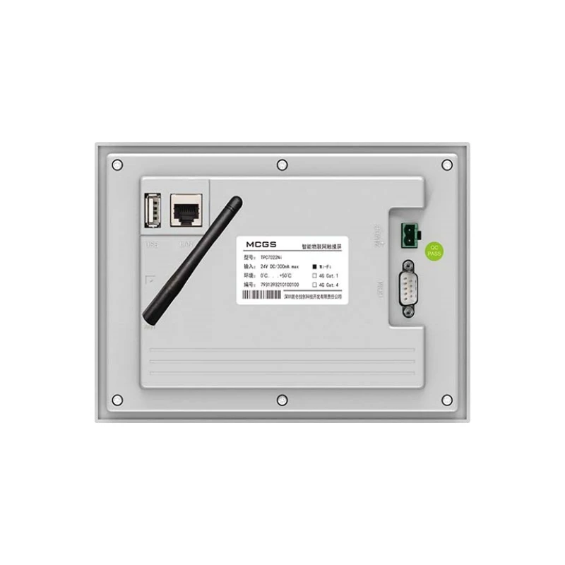 A smart Internet of Things touch screen with ARM CPU as the core and 800MHz main frequency. TPC7022Ni is a smart Internet of Things touch screen with ARM CPU as the core and 800MHz main frequency. The product is designed with a 7-inch TFT LCD display with a resolution of 800*480, a four-wire resistive touch screen, and a pre-installed McsgPro configuration software (running version). The product is designed with a 7-inch TFT LCD display with a resolution of 800*480, a four-wire resistive touch screen, and a pre-installed McsgPro configuration software (running version).MCGS TPC7072Gi 7-inch embedded touch screen 1 Network port 512M memory 4G storage