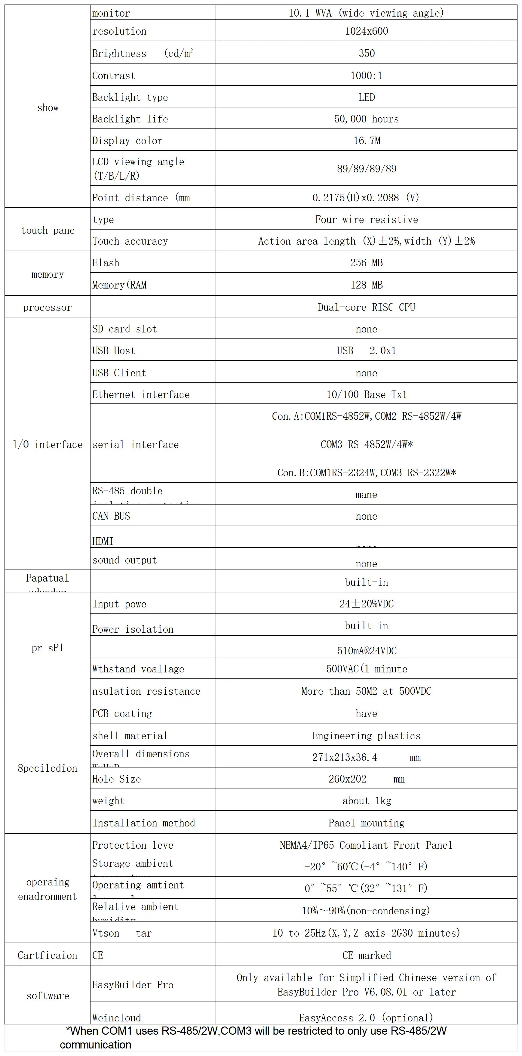 10.1' 1024x600 wide viewing angle LCD, LED backlight fanless cooling system COM2 and COM3 RS-485 support MPI 187.5K At the same