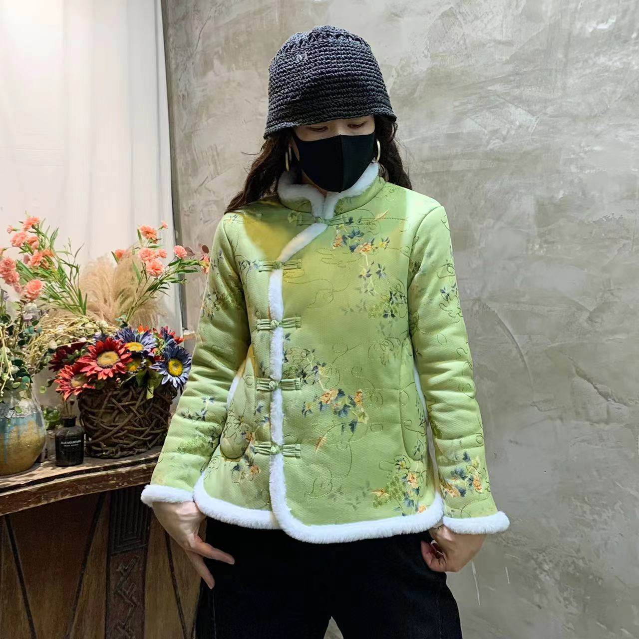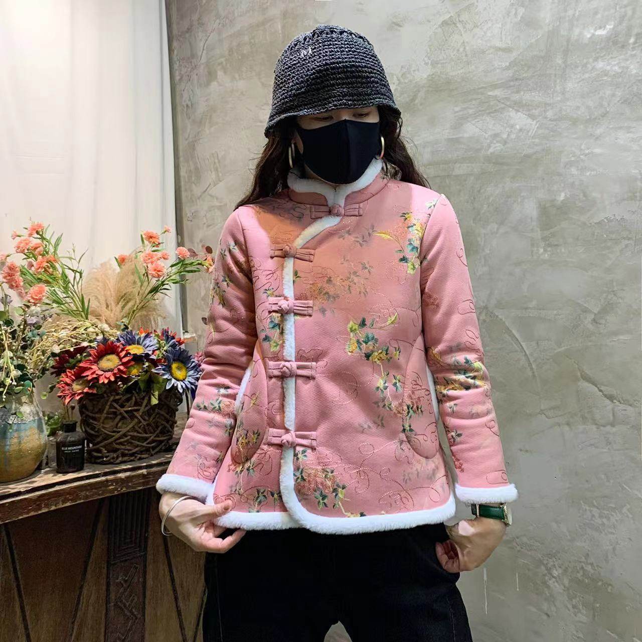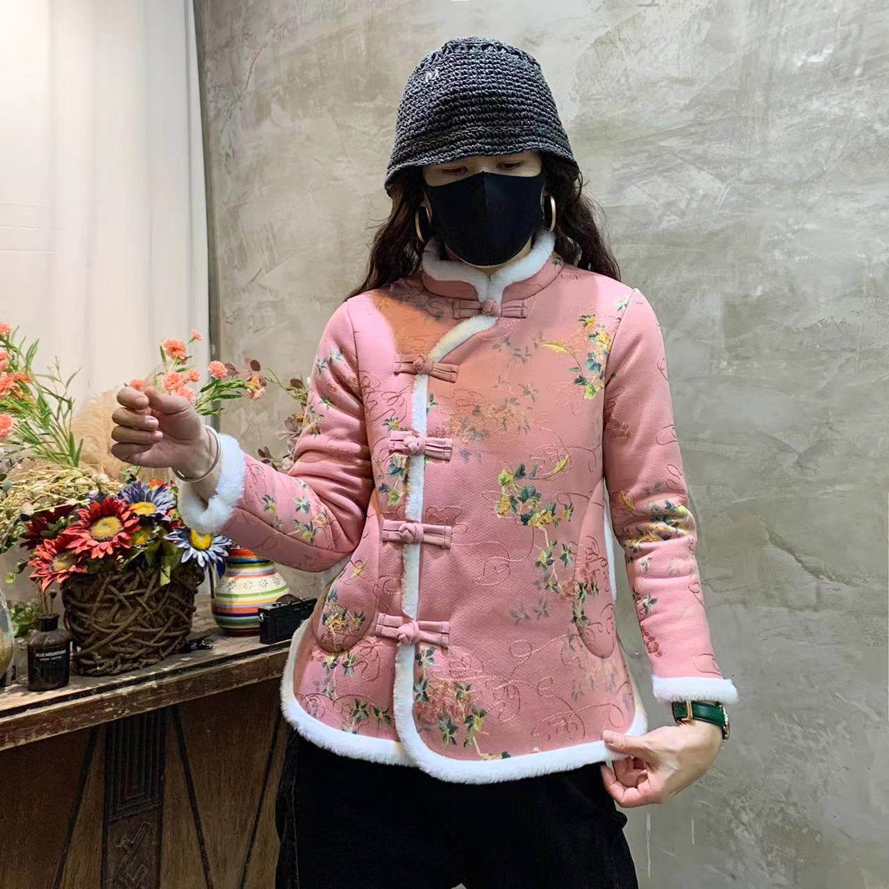 Northeast Big Flower Cotton-Padded Coat Women's National Style Tang Suit Floral Large Cotton-Padded Jacket Fleece-lined Thickened Small Floral Jacket Chinese Knot Button Coat Buckle Complex