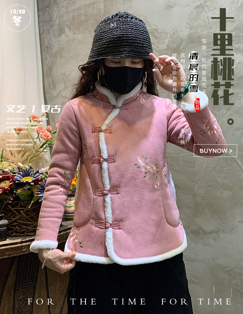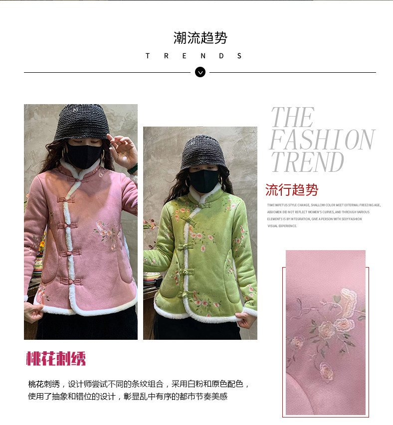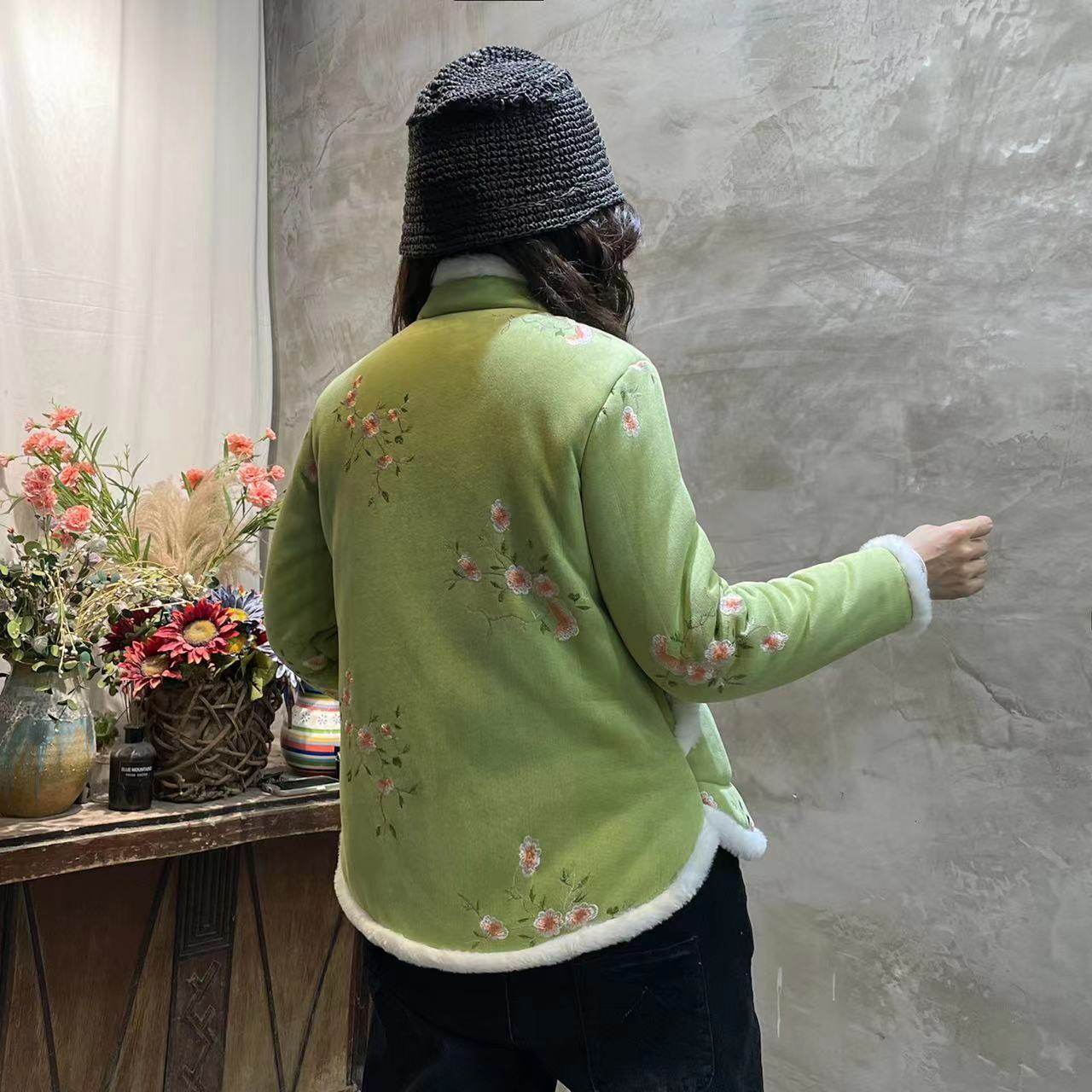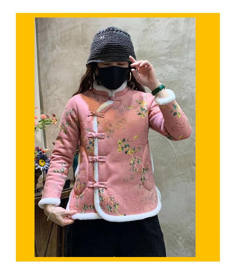 Northeast Big Flower Cotton-Padded Coat Women's National Style Tang Suit Floral Large Cotton-Padded Jacket Fleece-lined Thickened Small Floral Jacket Chinese Knot Button Coat Buckle Complex