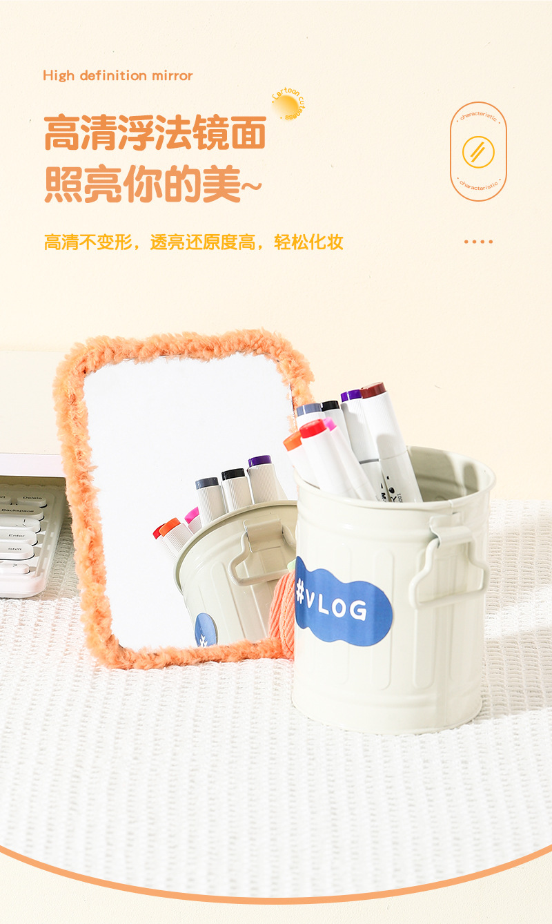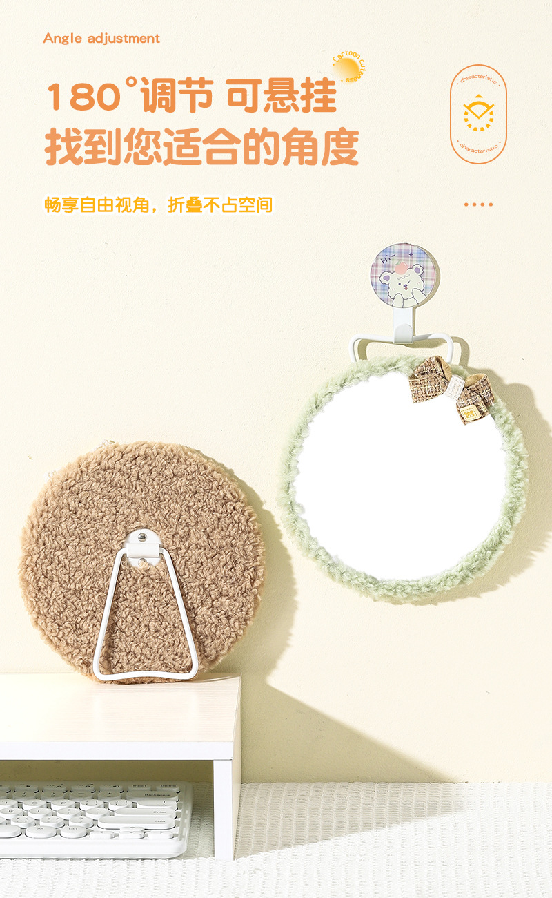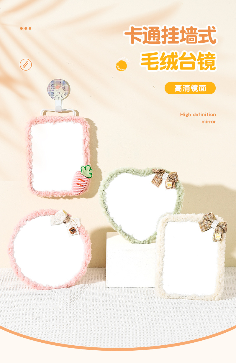 autumn and winter plush table mirror lambswool cute makeup mirror student desktop cartoon dressing mirror