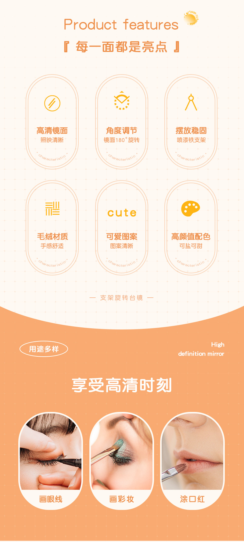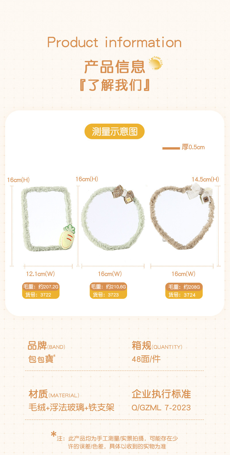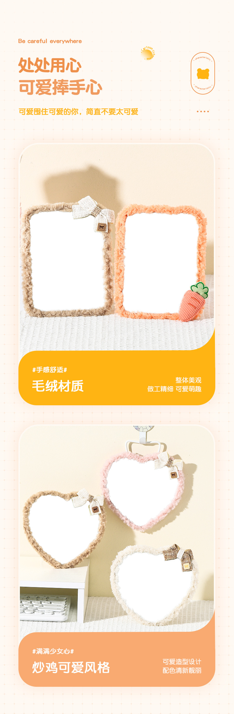 autumn and winter plush table mirror lambswool cute makeup mirror student desktop cartoon dressing mirror