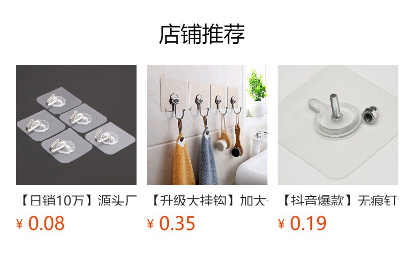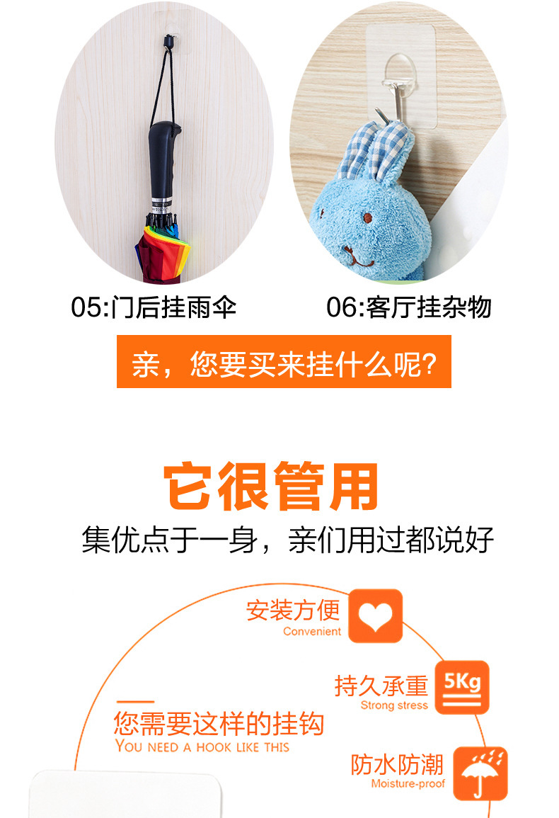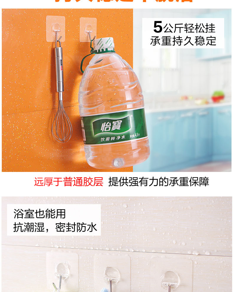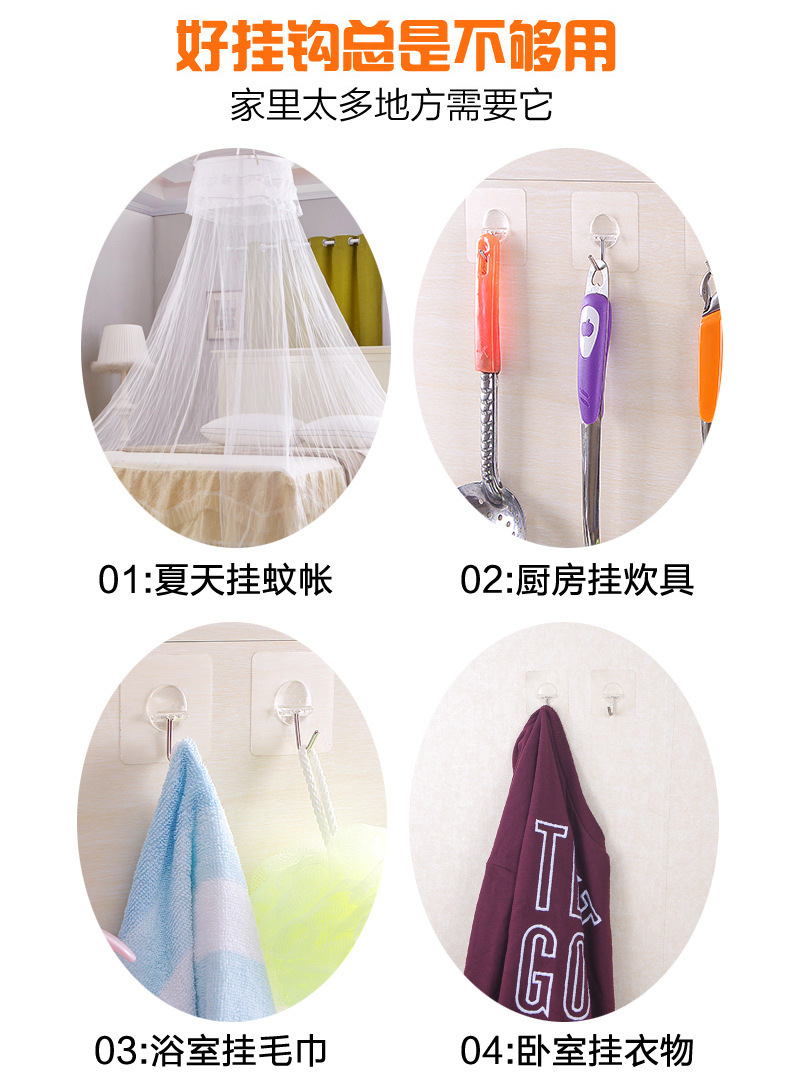 Factory Strong Viscose Punch-Free Acrylic Transparent Hook Supermarket Wholesale Nail Free Stickers Clothes Magic Sticky Hook