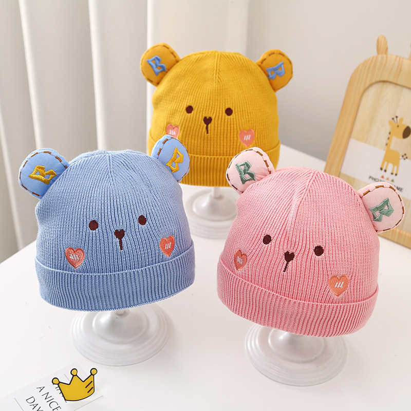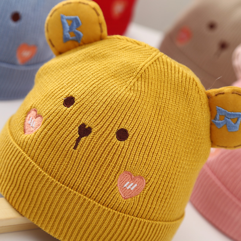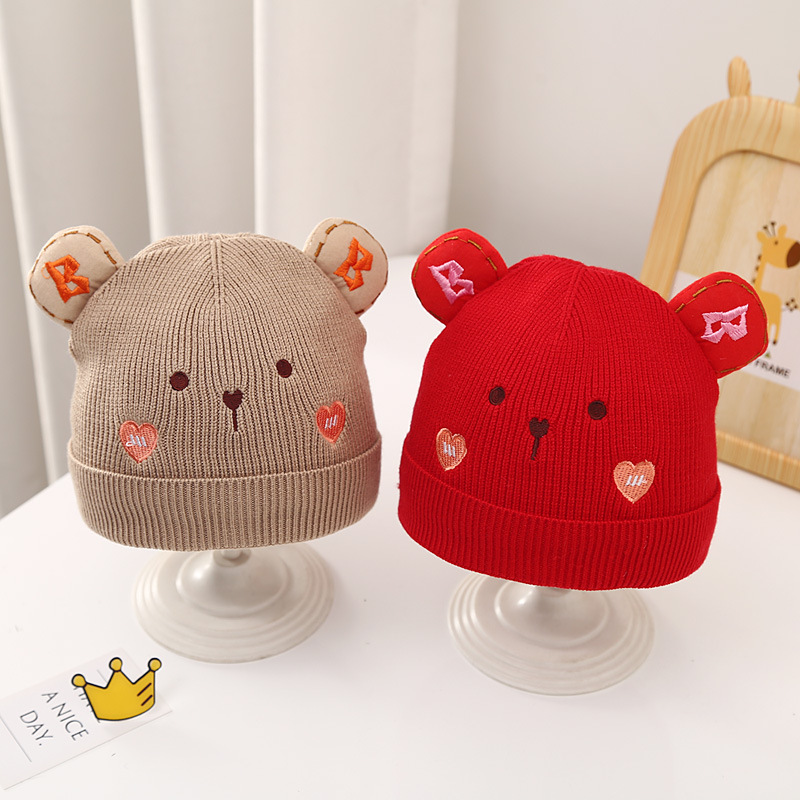 Embroidered Heart Bear Baby Wool Hat