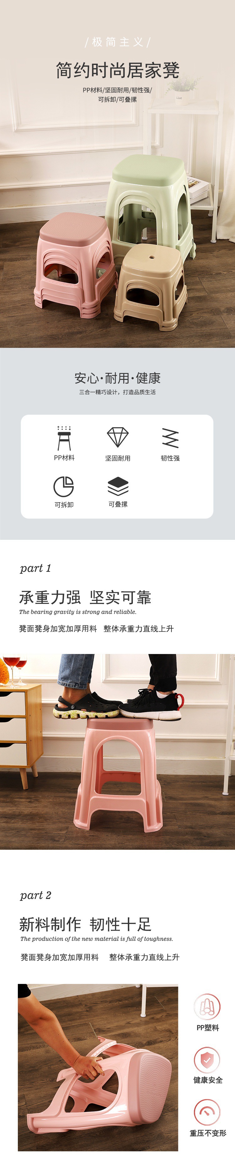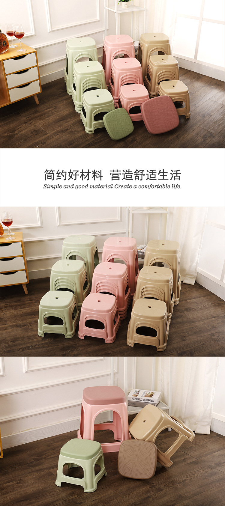 short stool plastic stool household thickened lazy board high stool bench non-slip living room chair small size plastic stool