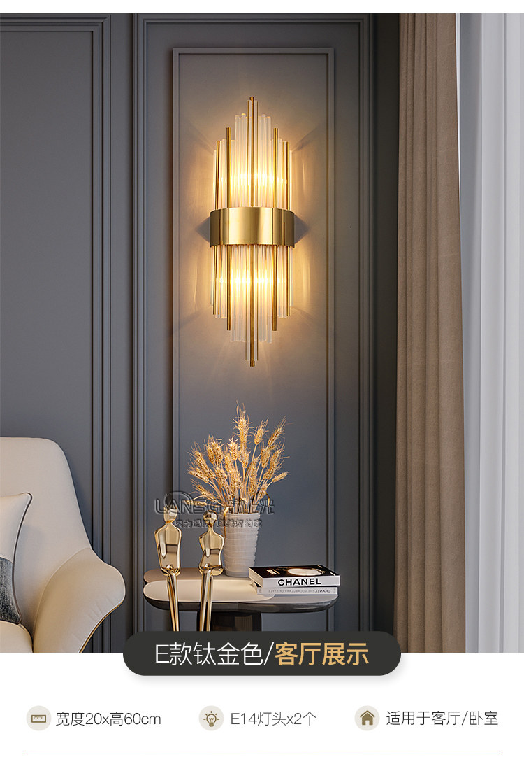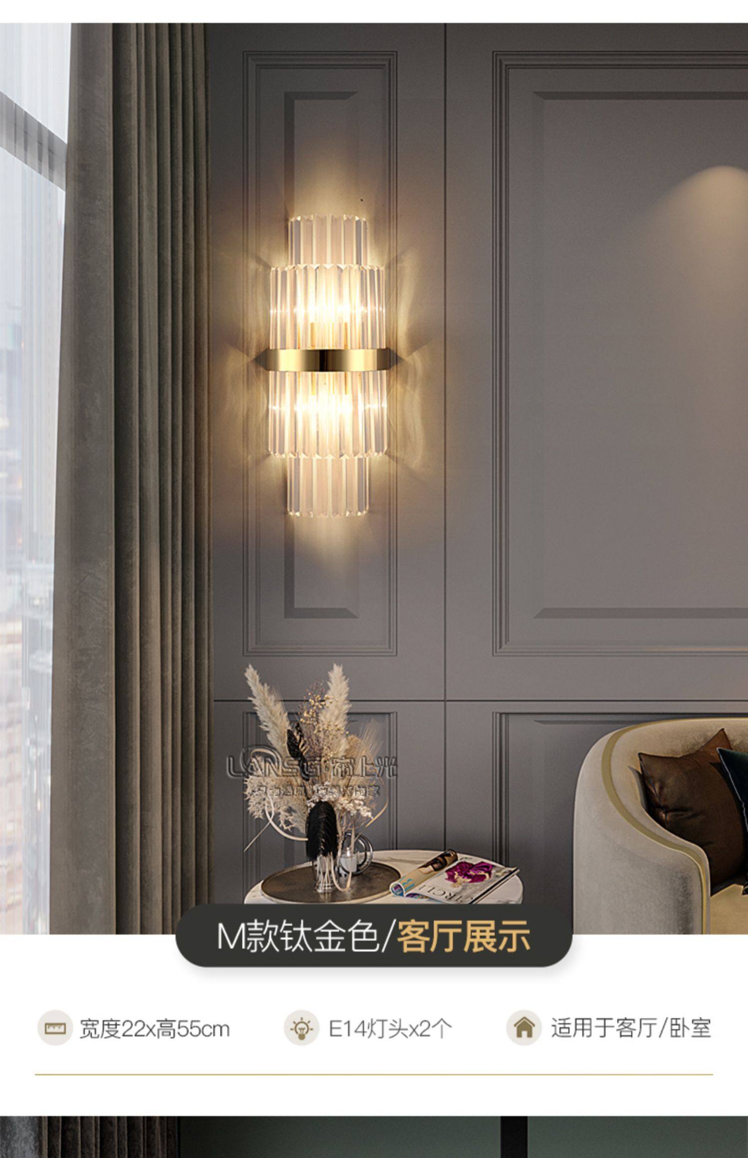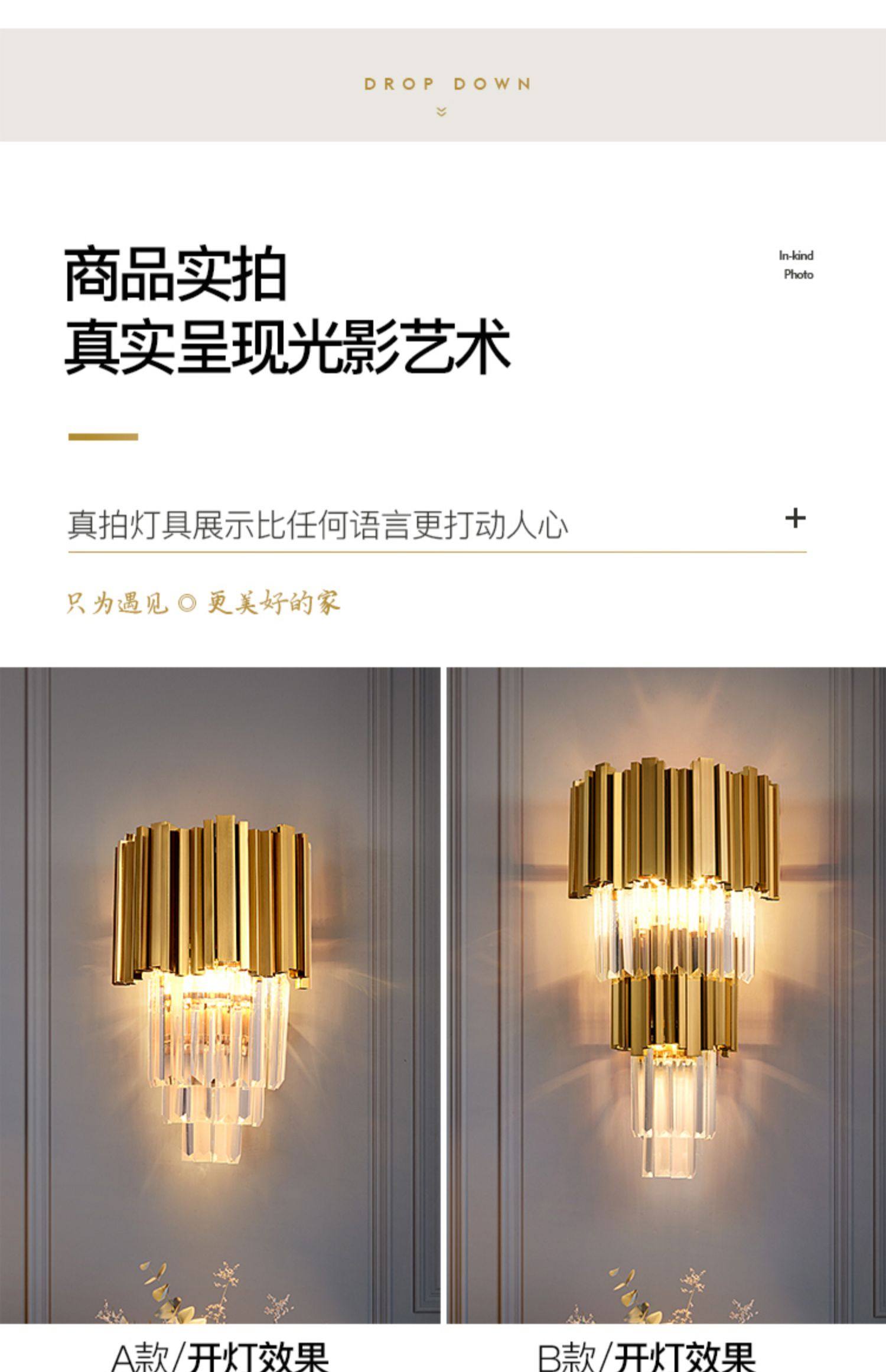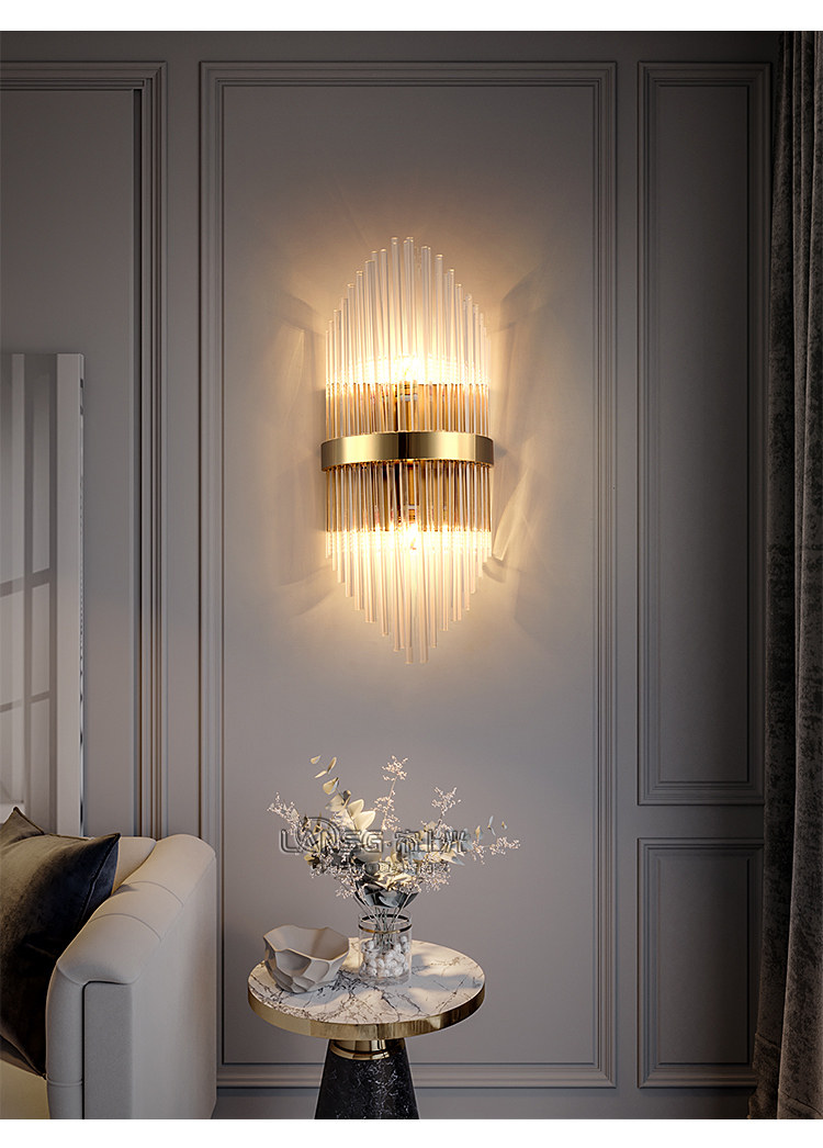 wall lamp living room post-modern tv wall background wall light luxury crystal bedroom bedside aisle rechargeable wall lamp wireless