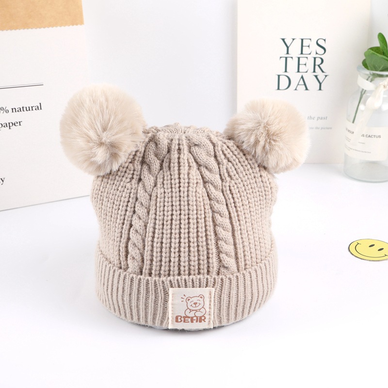 Cotton cashmere double ball fabric baby wool hat