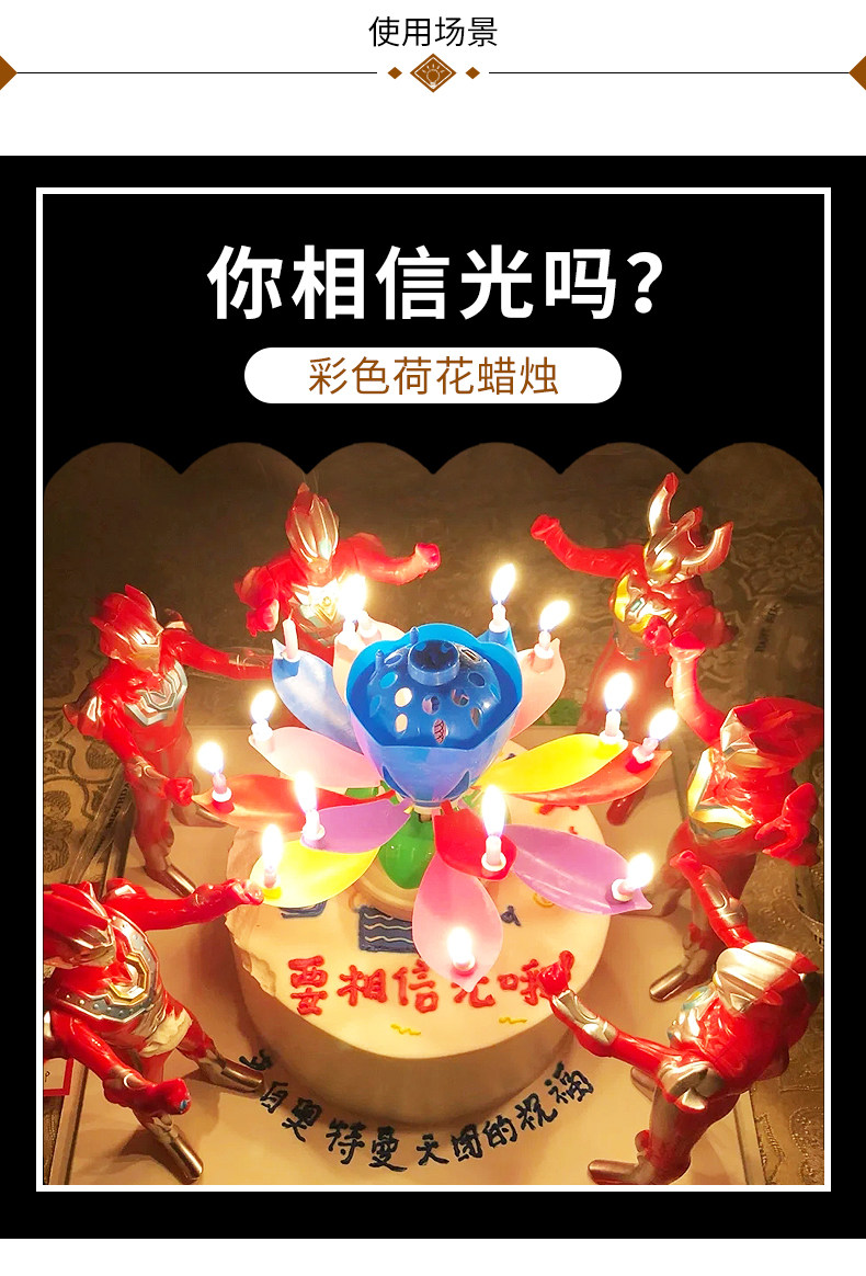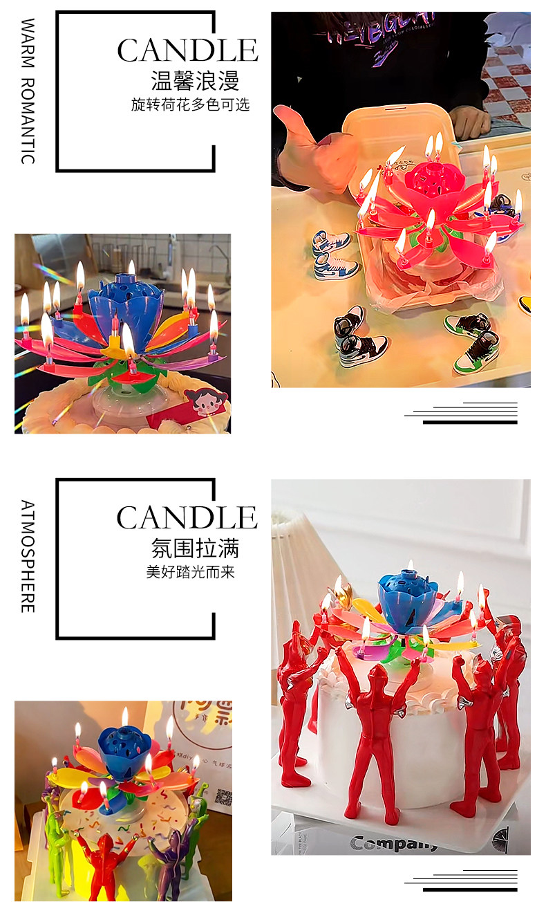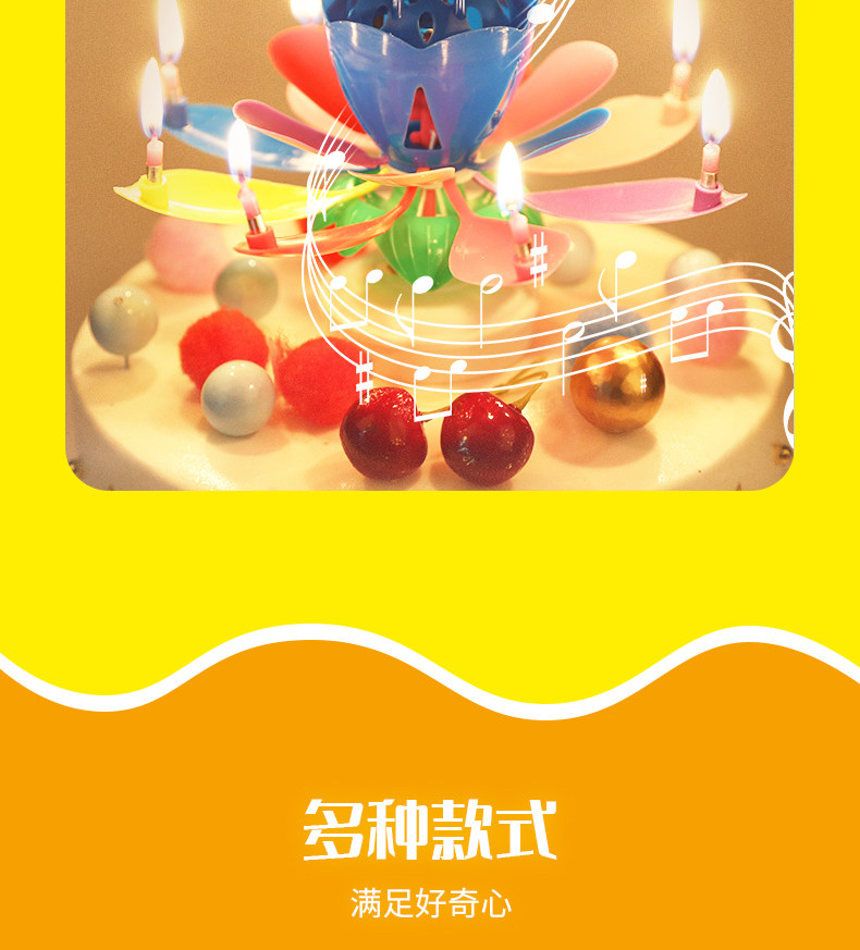 internet celebrity double-layer colorful lotus birthday cake electronic musical candle party blossom flat rotating lotus wholesale