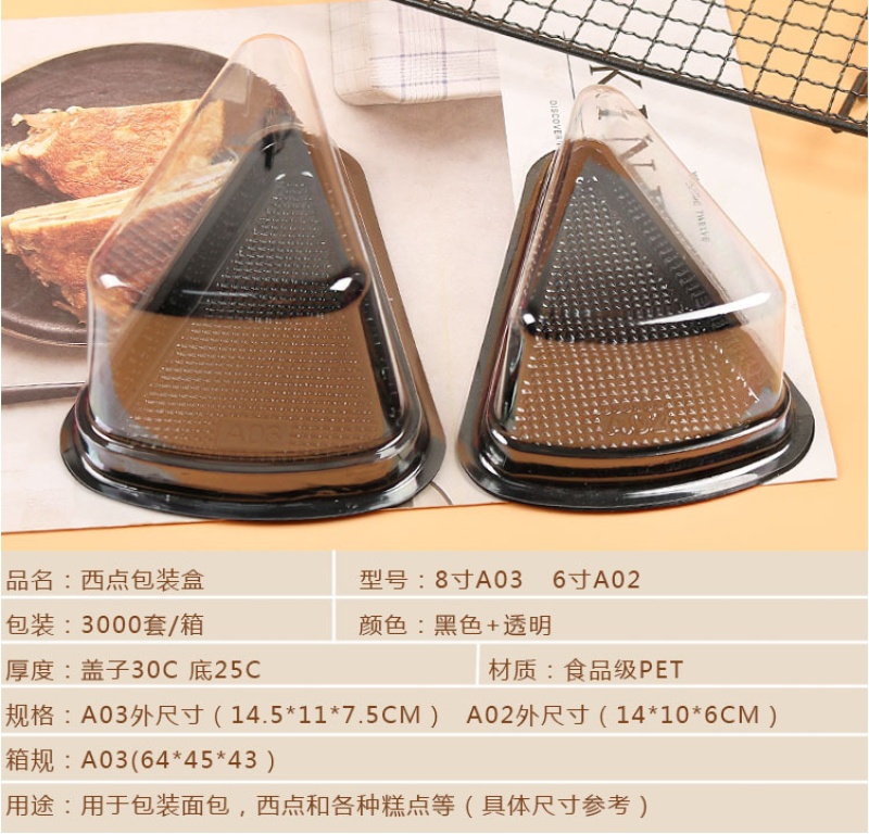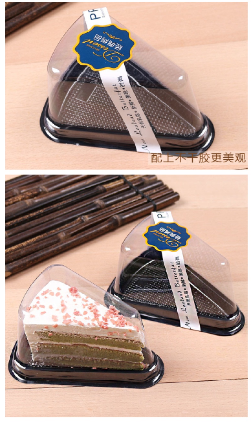 triangle transparent cake box pet plastic uptake mousse kimchi box without paper sticker