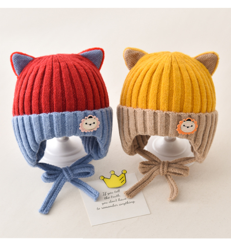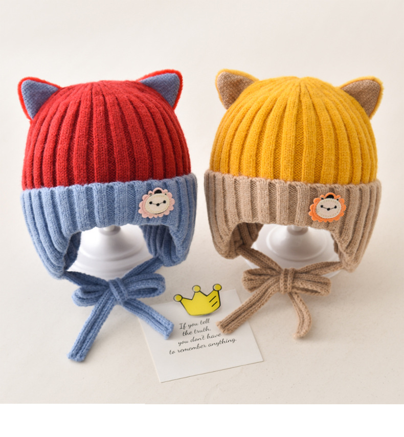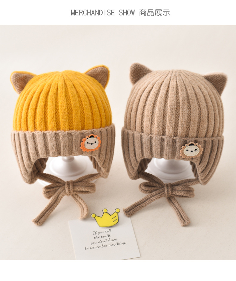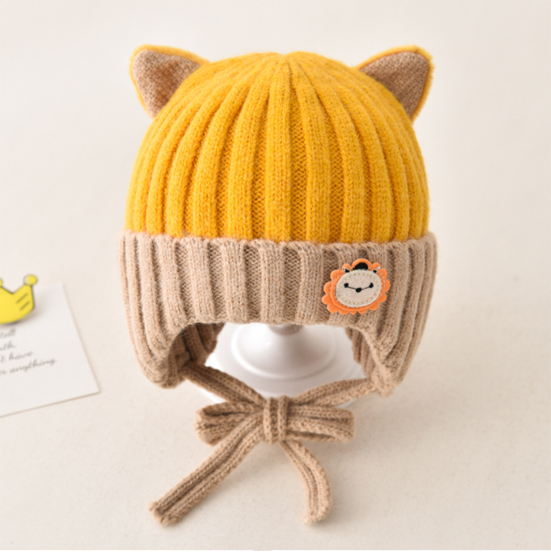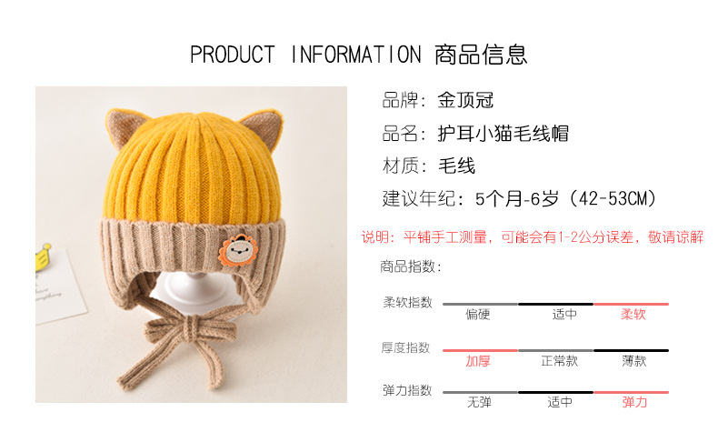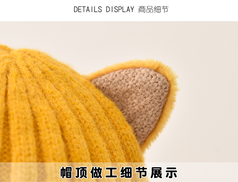 5 months-5 years old (42-53cm)-average size (ear protection design)-yellow (ear protection kitten woolen cap)