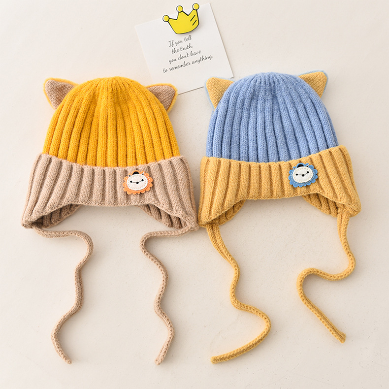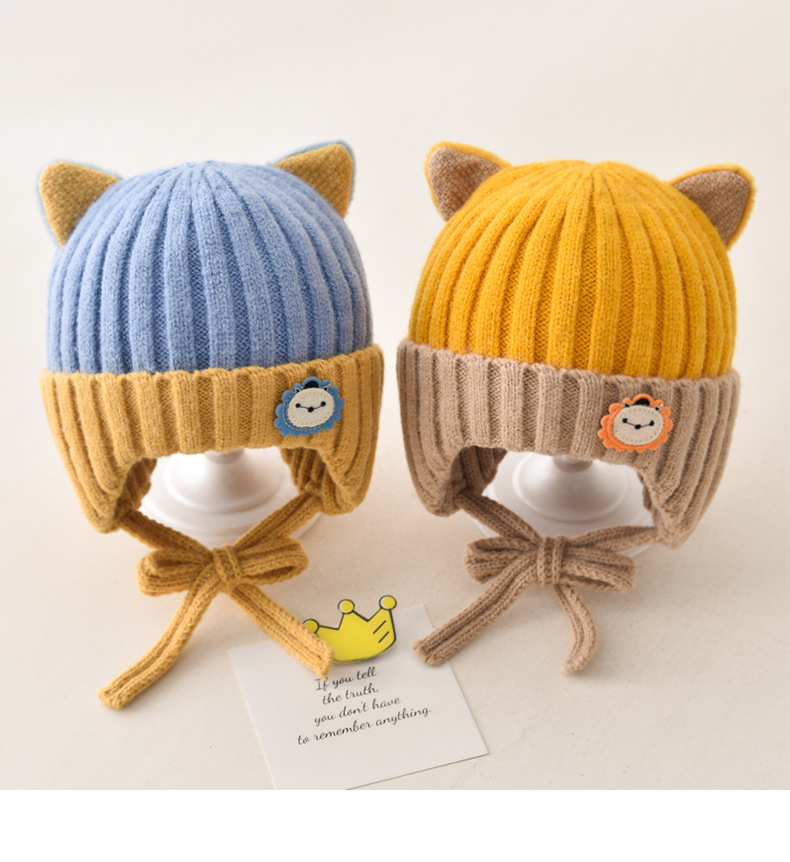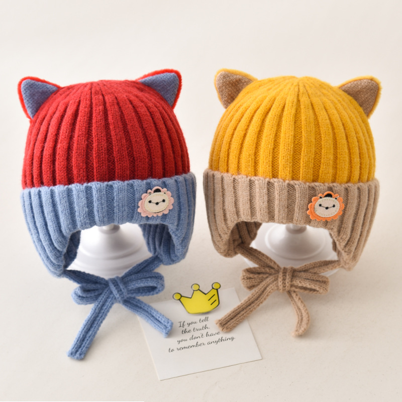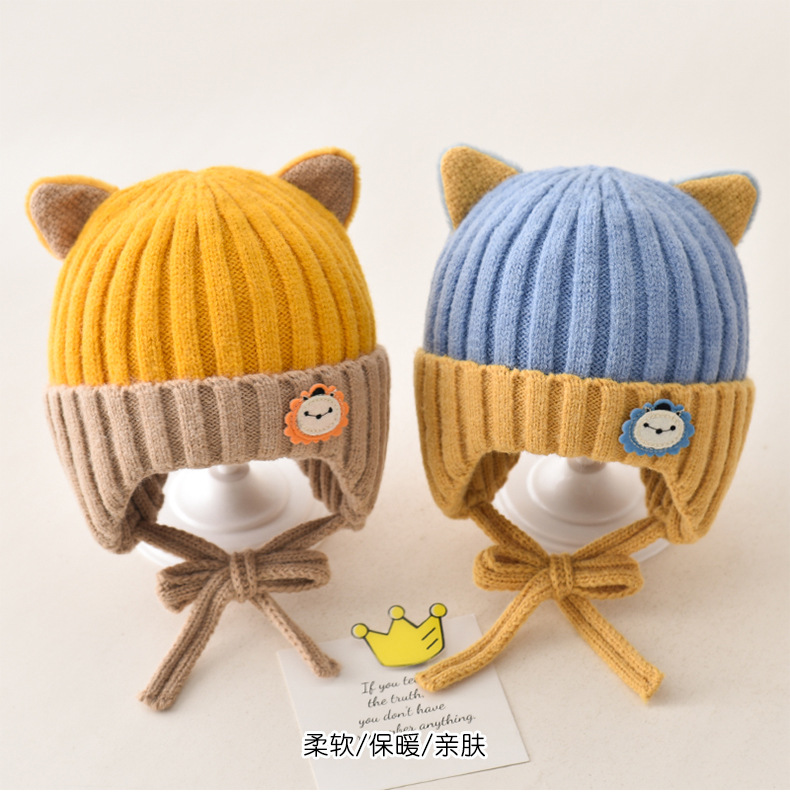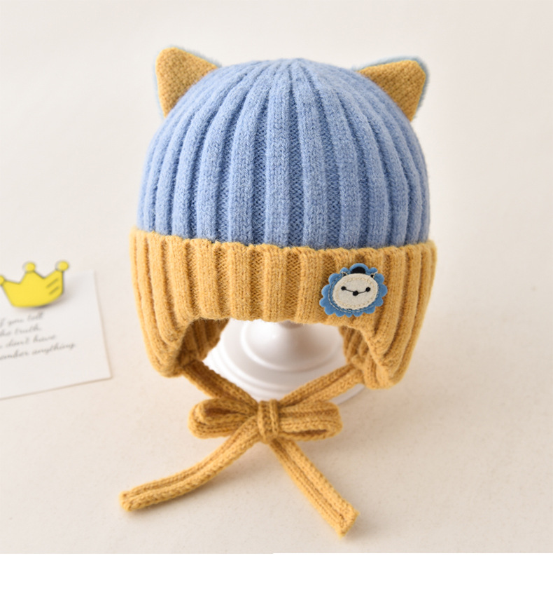 5 months-5 years old (42-53cm)-average size (ear protection design)-yellow (ear protection kitten woolen cap)