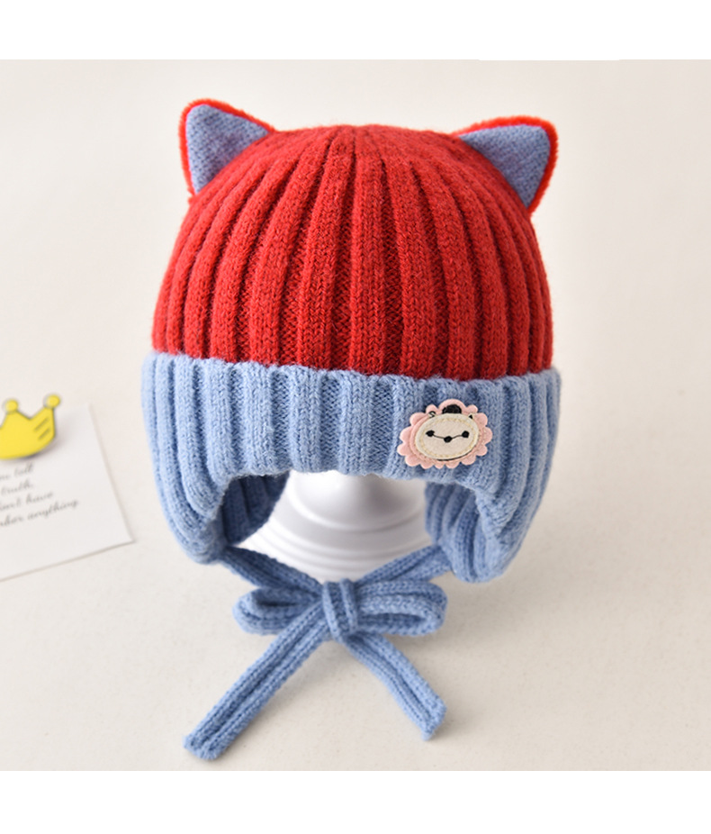 5 months-5 years old (42-53cm)-average size (ear protection design)-red (ear protection kitten wool hat)