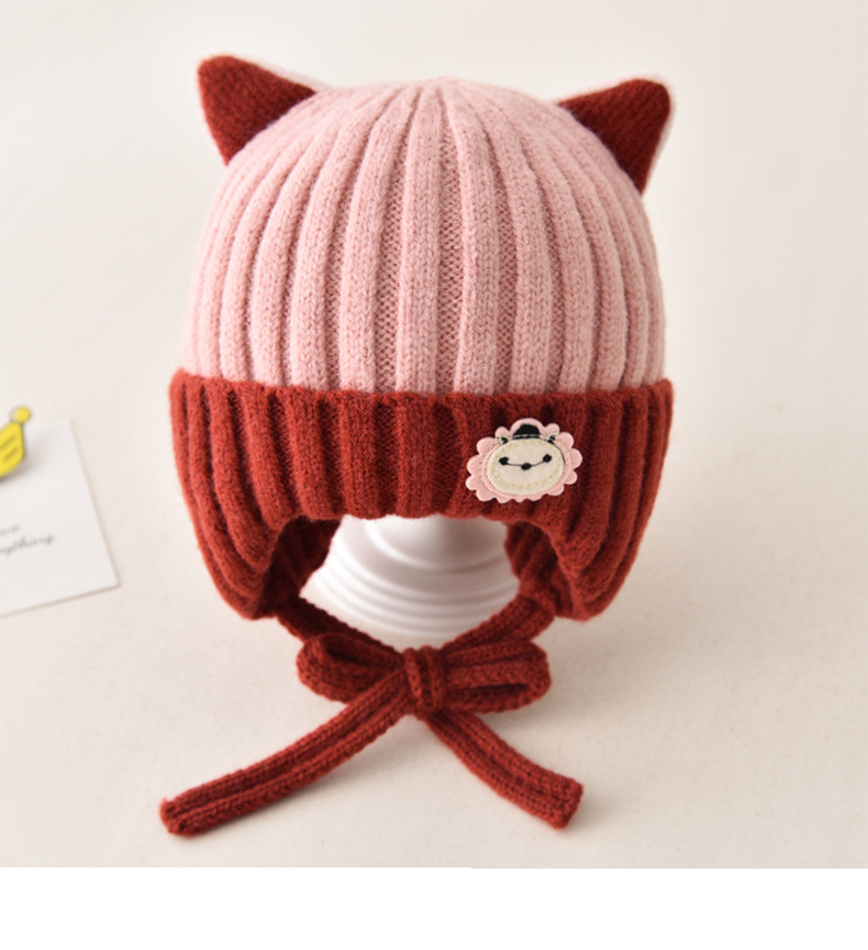 5 months-5 years old (42-53cm)-average size (ear protection design)-pink (ear protection kitten wool hat)