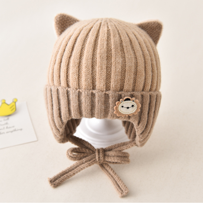 5 months-5 years old (42-53cm)-average size (ear protection design)-khaki (ear protection kitten woolen cap)