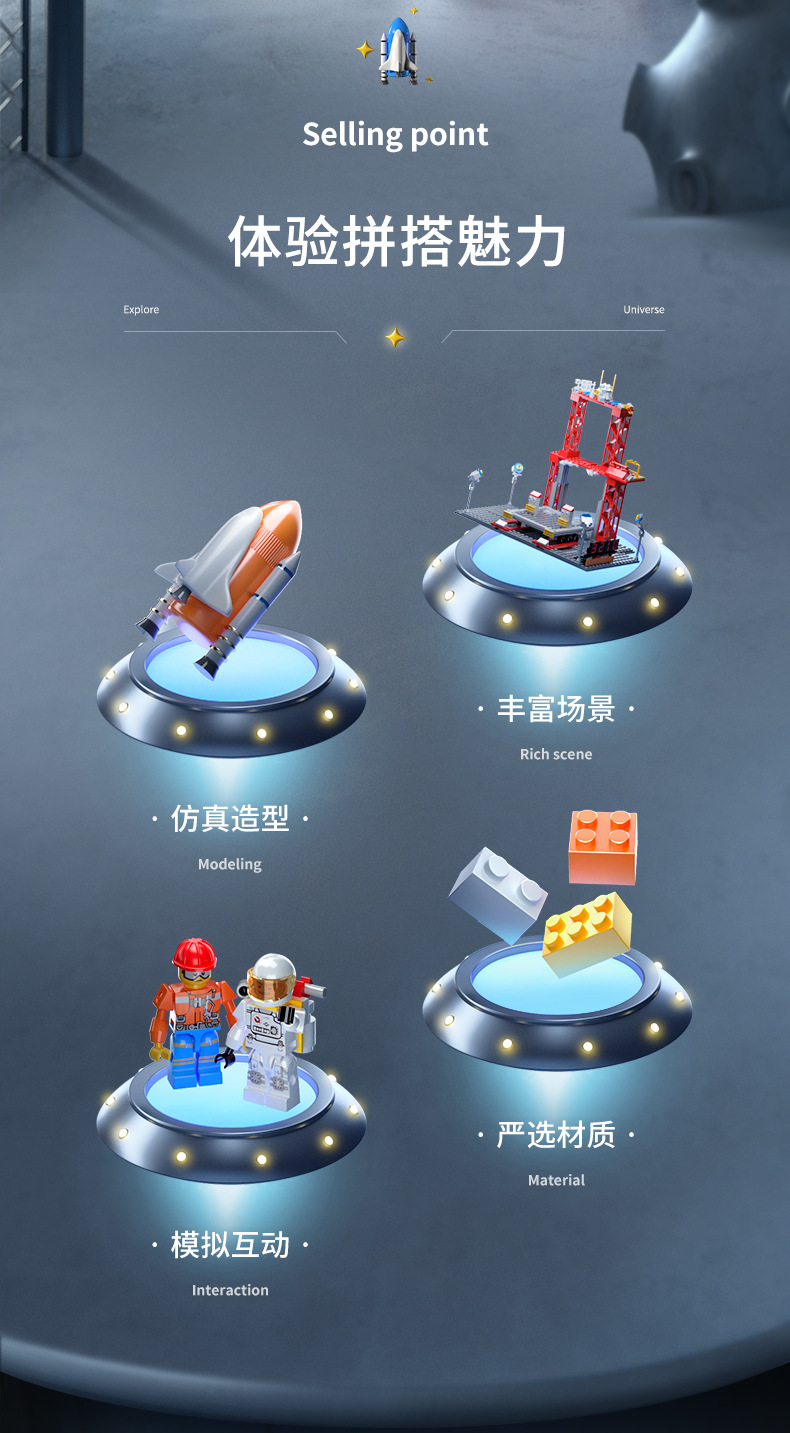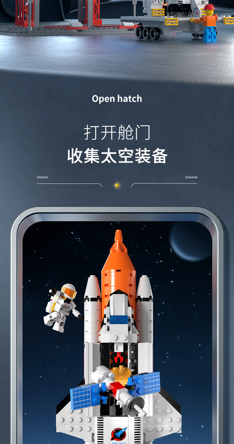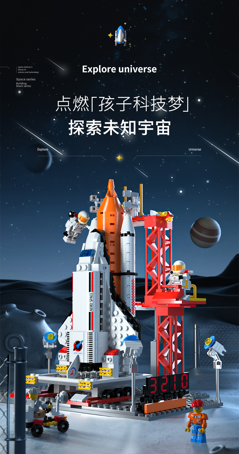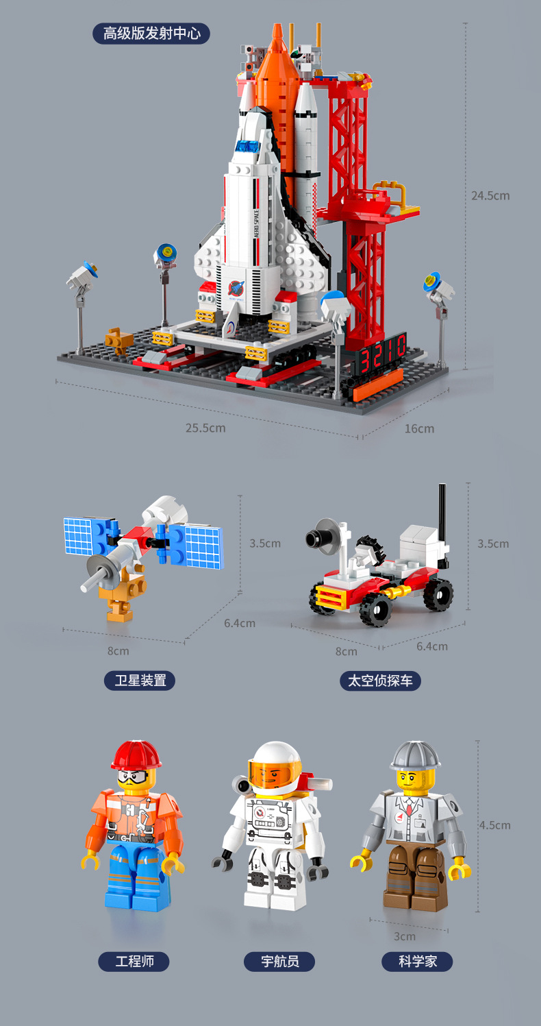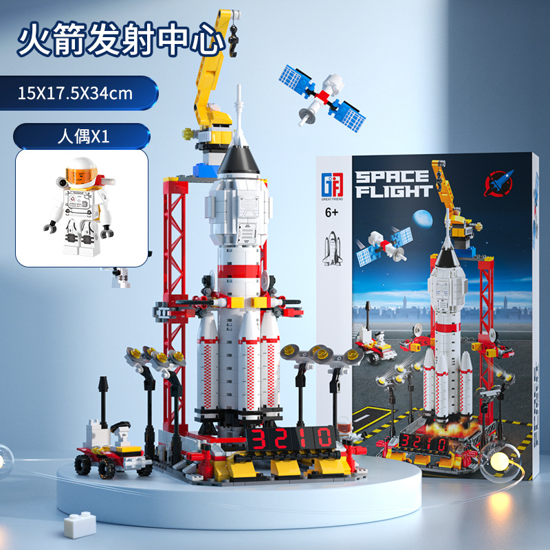 space building blocks [8123-51-launch vehicle + launch pad + astronaut-color box + mail order box]]