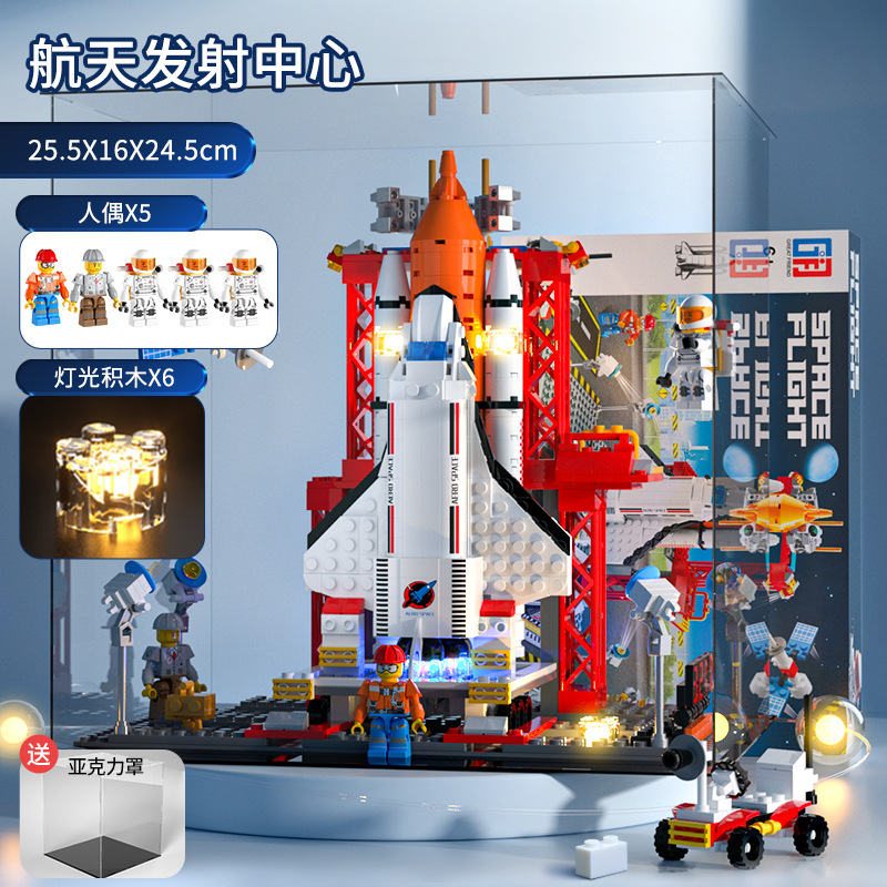 small particle building blocks +3 electricity +5 dolls [8123-39-aerospace-color box + mail order box] upgraded version + acrylic