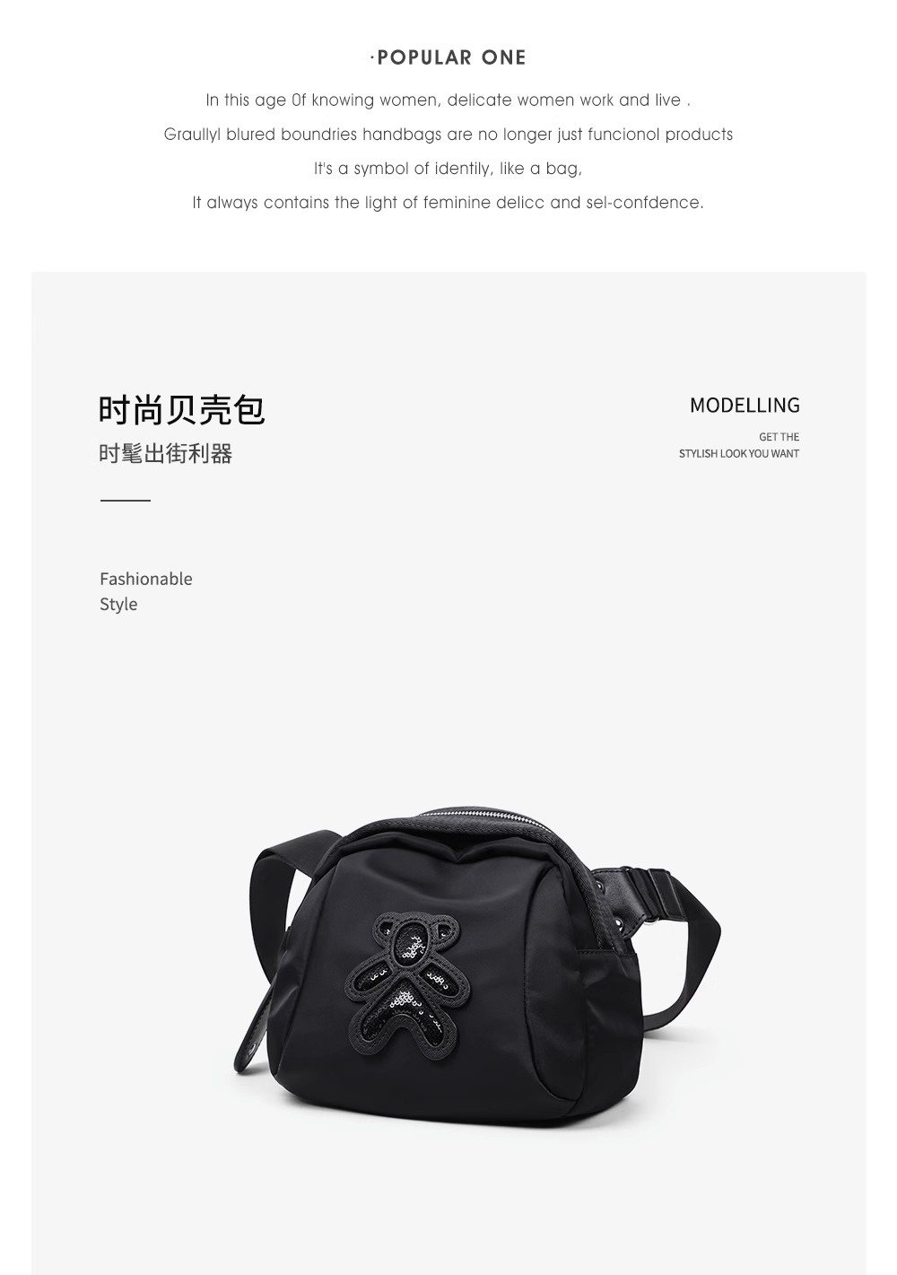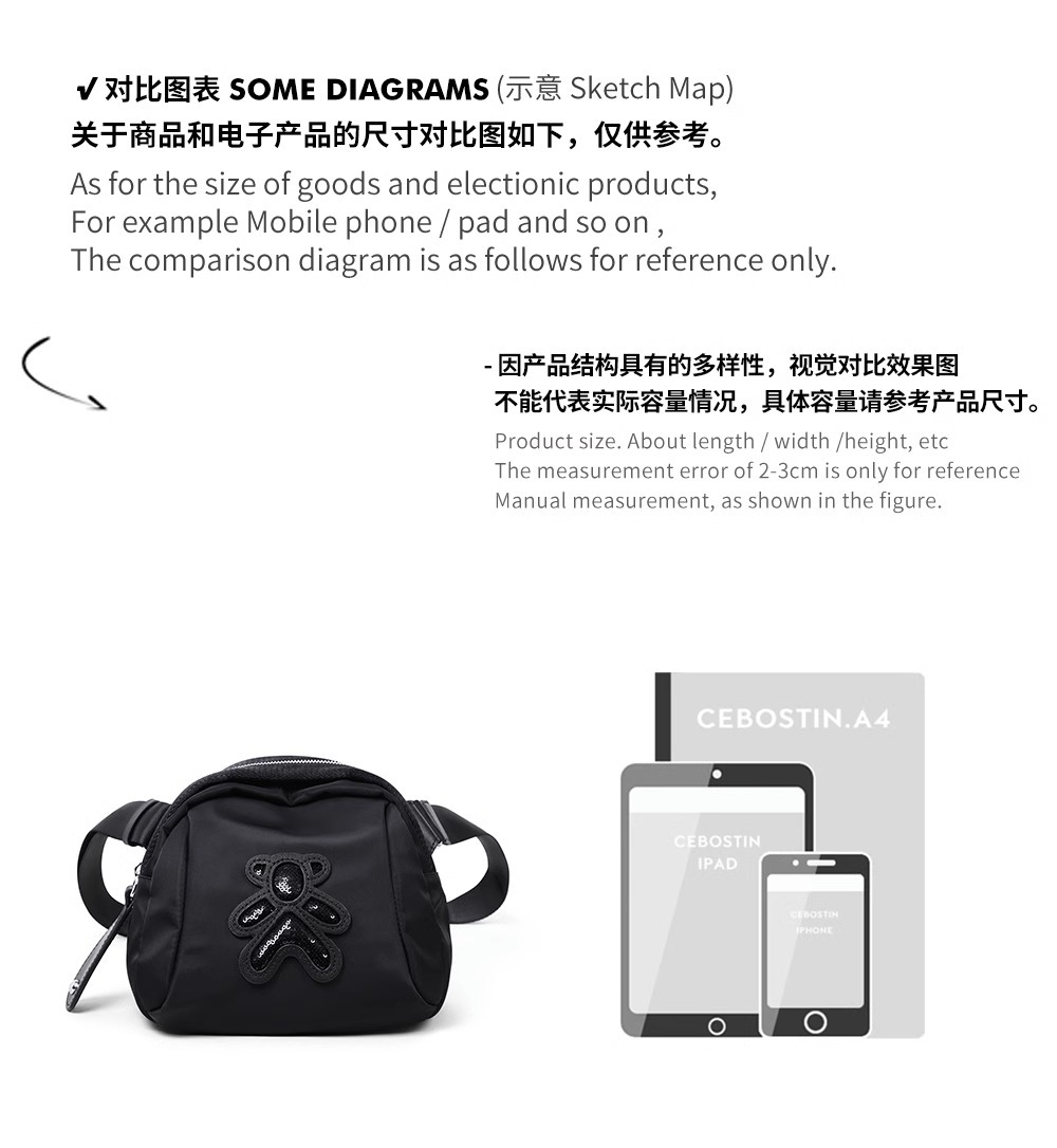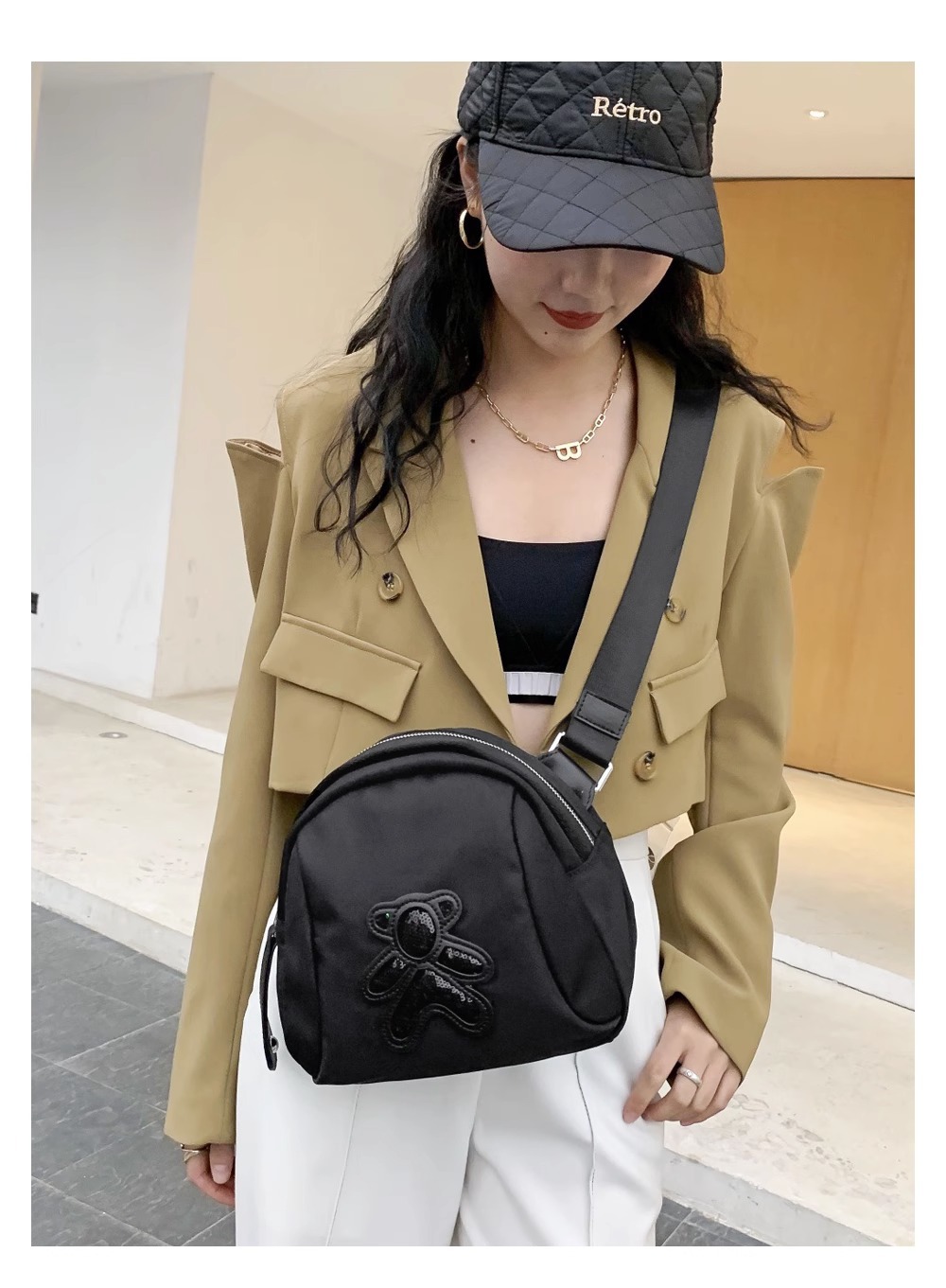 little bear shoulder bag black