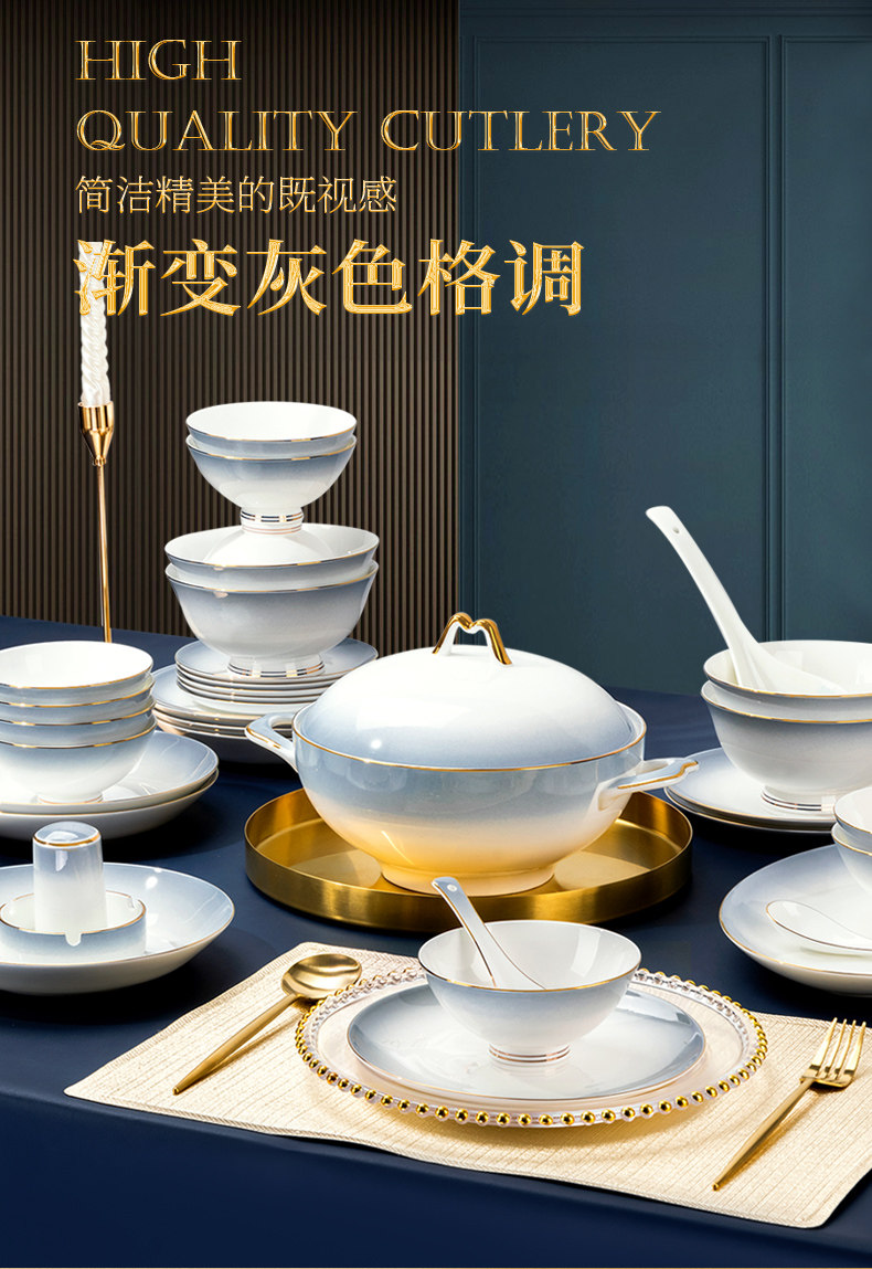 bowl household simple bucket nordic bone china tableware light luxury bowl plate gradient ceramic bowl and dish set