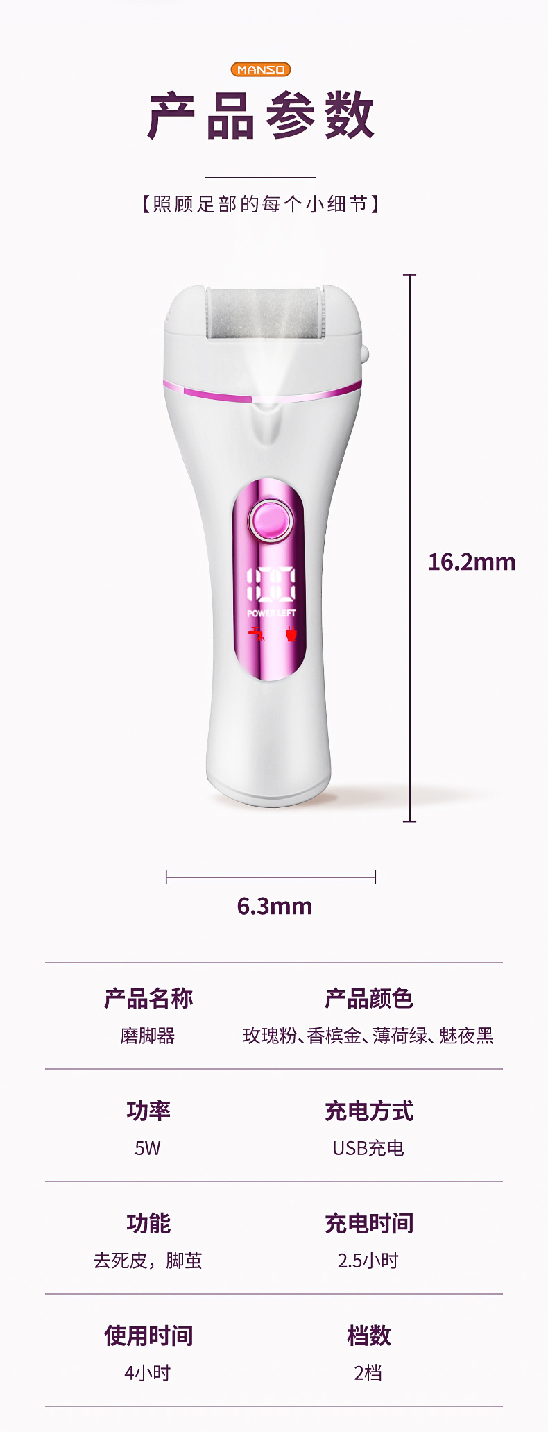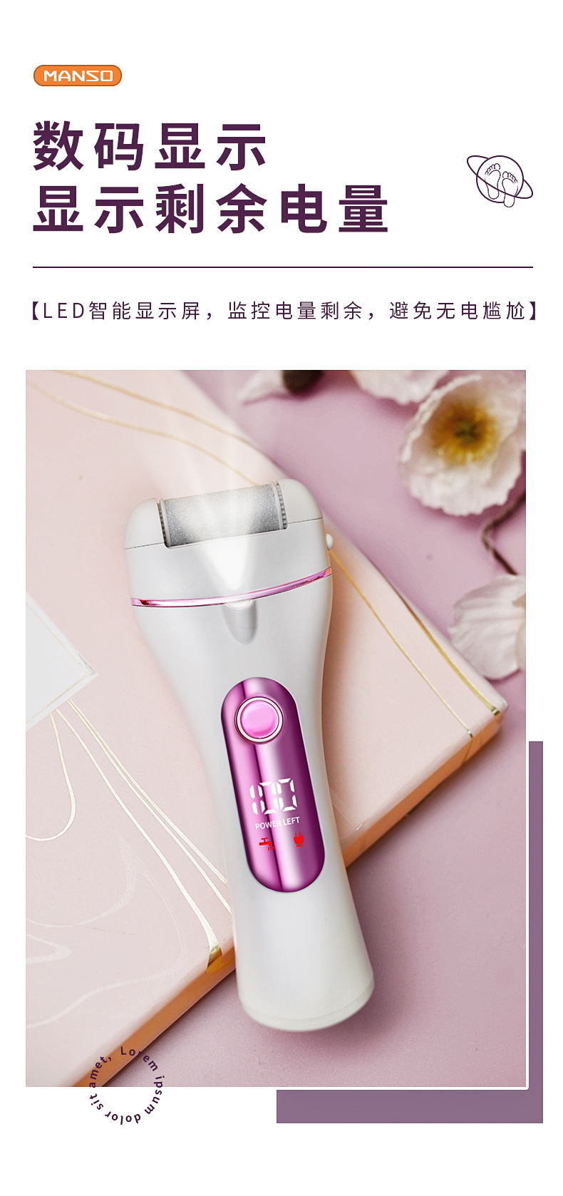 manso electric foot grinder foot grinding get rid of foot skin artifact automatic rechargeable calluses foot beauty pedicure device pedicure device