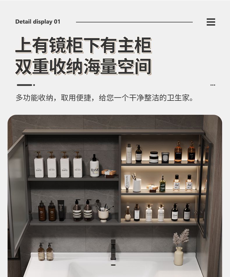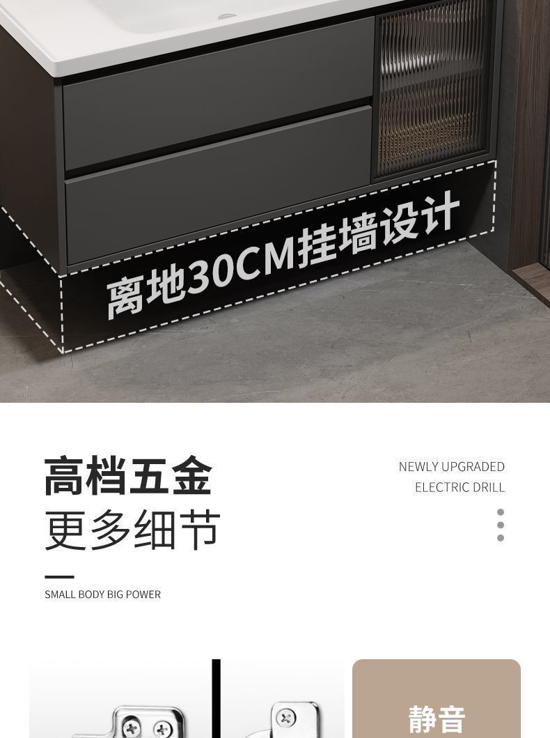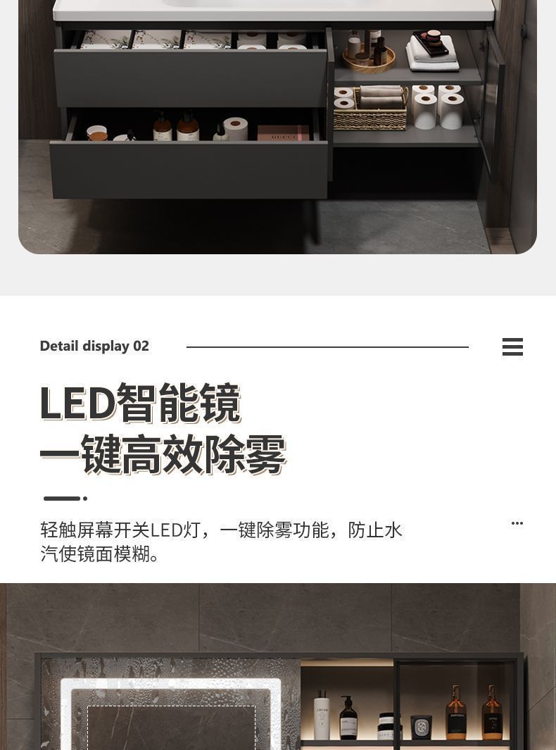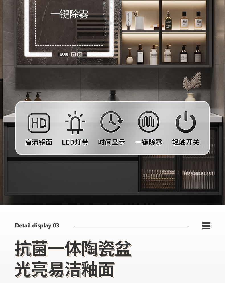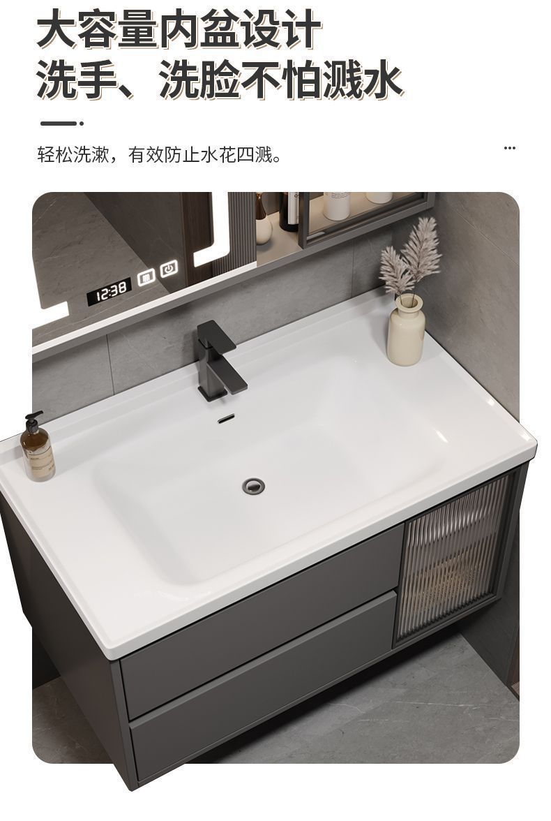 iron gray (smart mirror cabinet) + ceramic basin free hardware-80cm