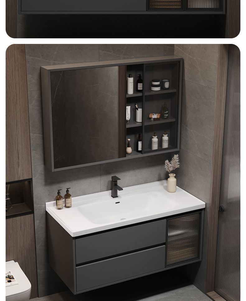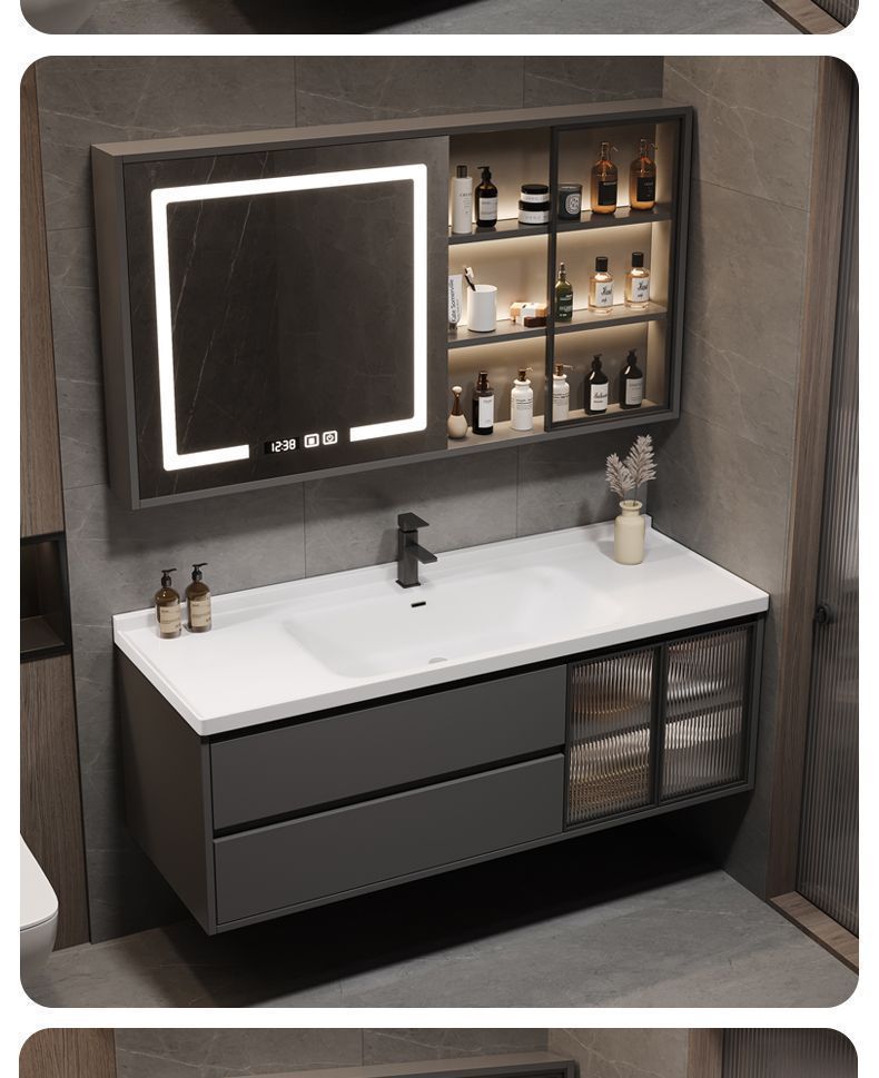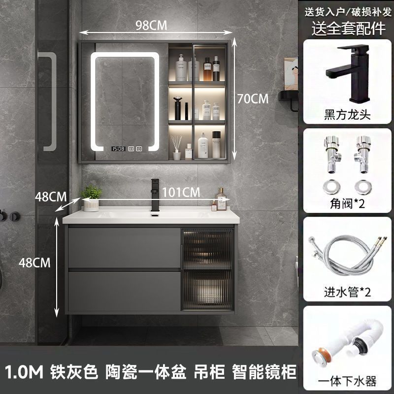 iron gray (smart mirror cabinet) + ceramic basin free hardware-100cm