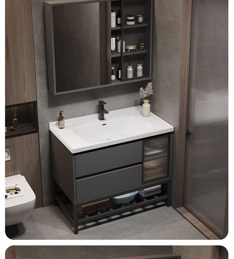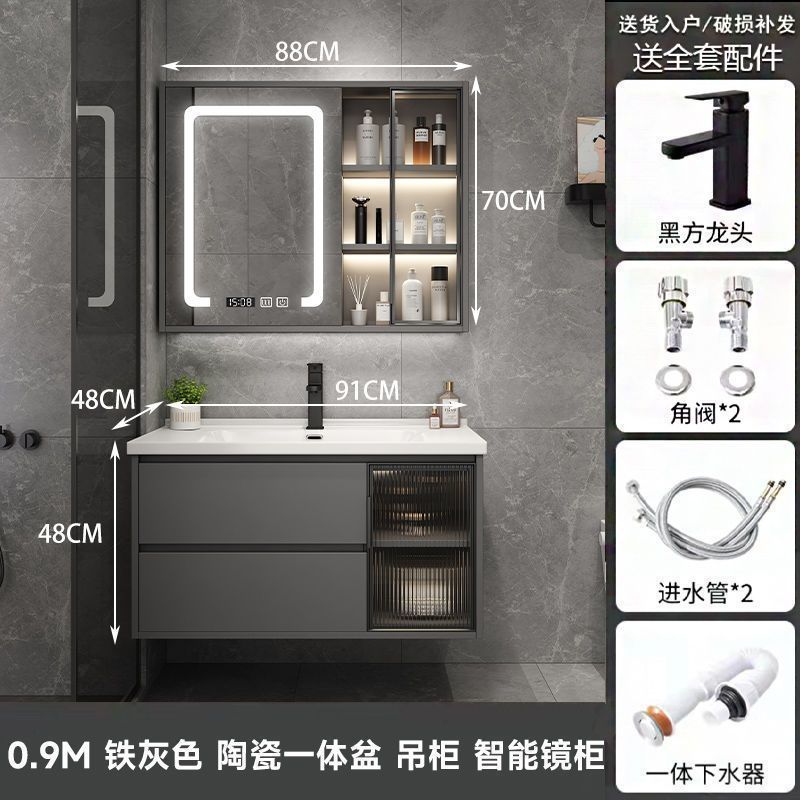 iron gray (smart mirror cabinet) + ceramic basin free hardware-90cm