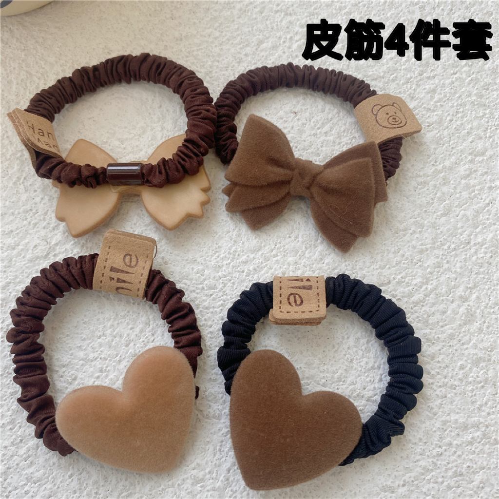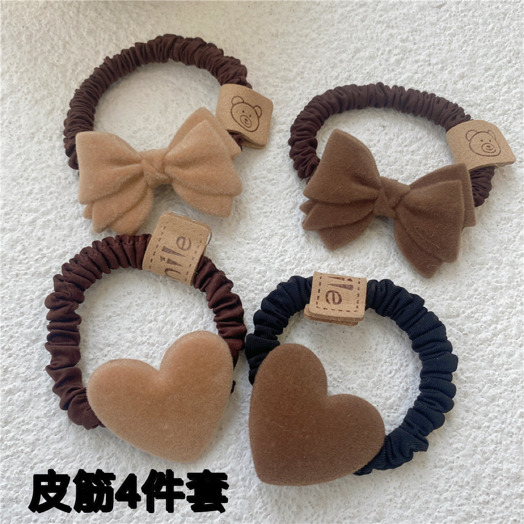 four-piece set brown flocking headdress bowknot hair ring high elasticity durable hair accessories hair rope not tight hair rubber band