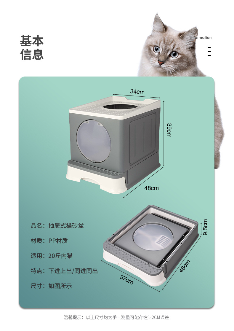 Product Name: Foldable Full-Enclosure Cat Litter Box