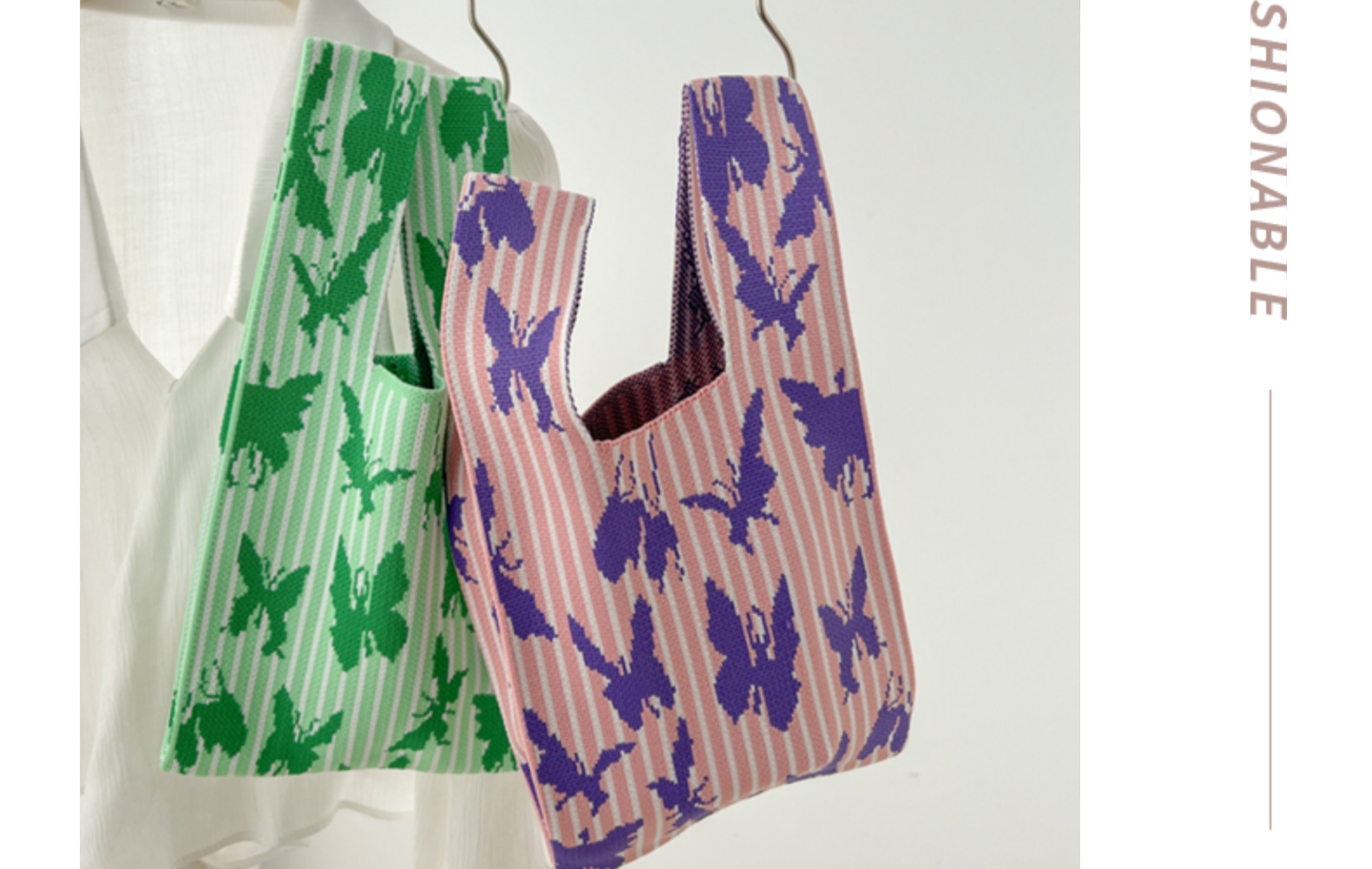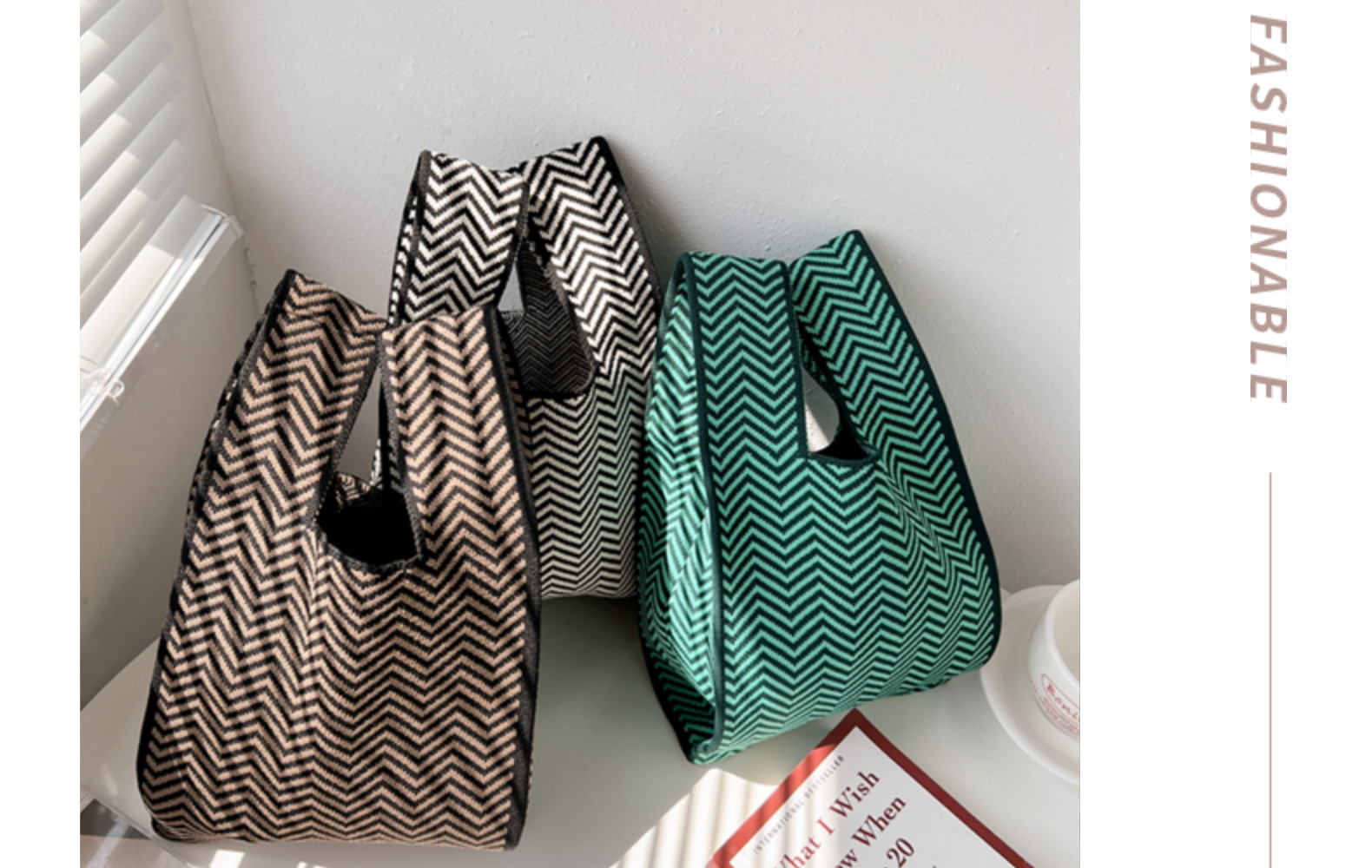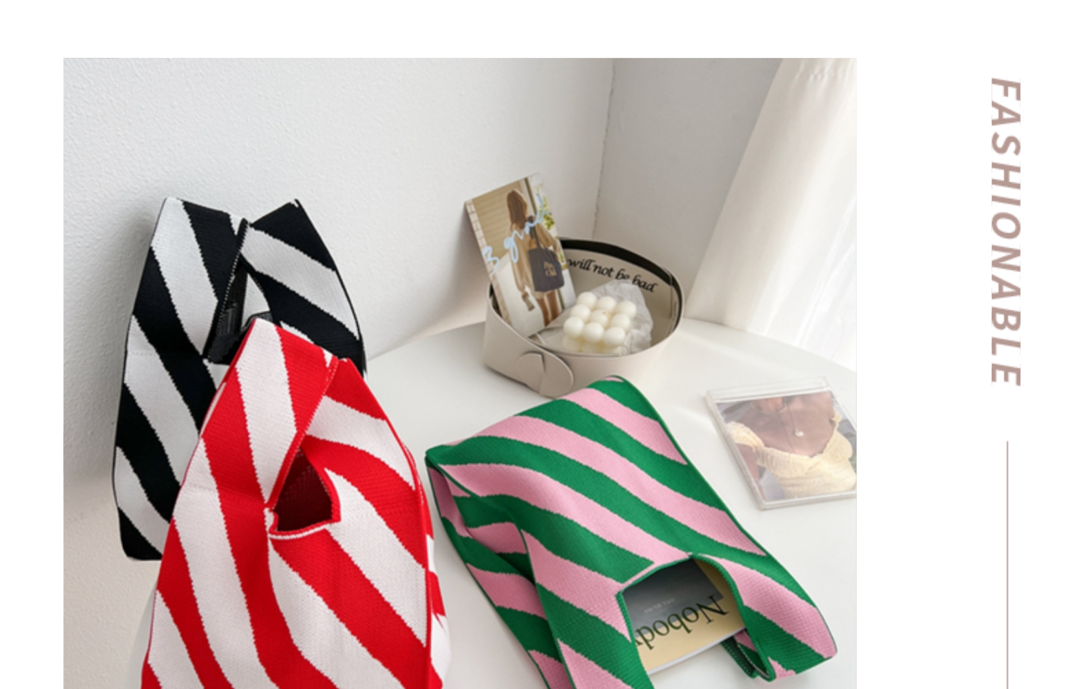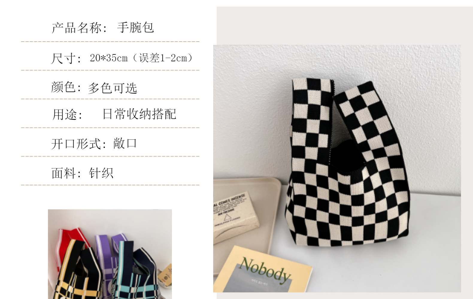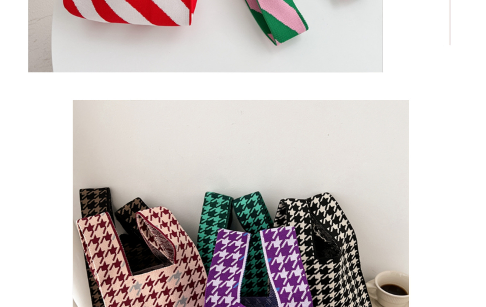 New Handbag Knitted Korean Style Bag Portable Cell Phone Bag Wrist Bag Striped Color Matching Trendy Open New Year