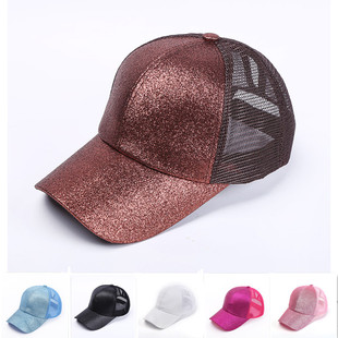 | european and American summer creative style back opening women's ponytail baseball cap without CC sequined Ponytail Hat Factory Direct Sales |