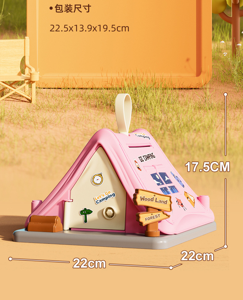 pink tent coin bank [color box-with theme stickers]]