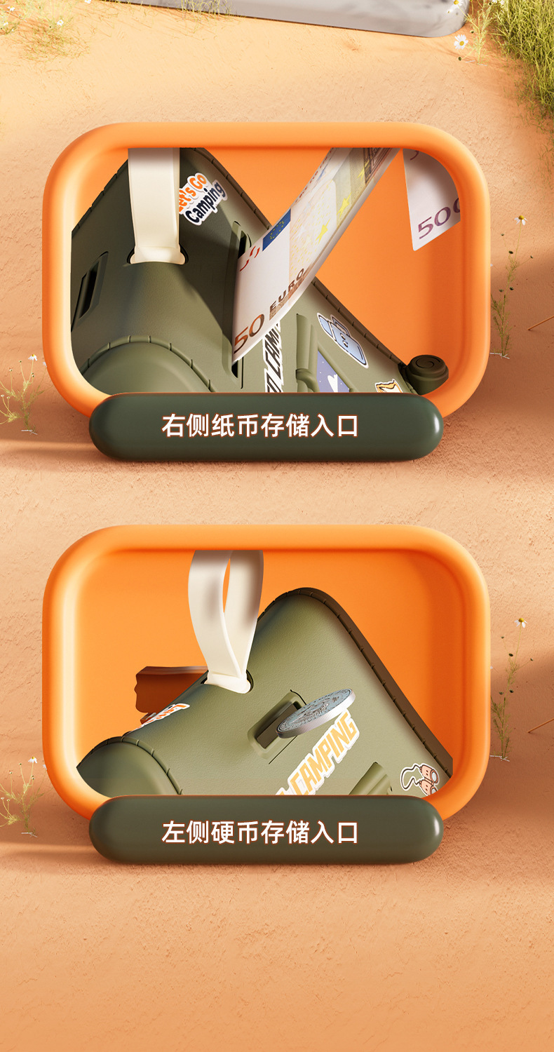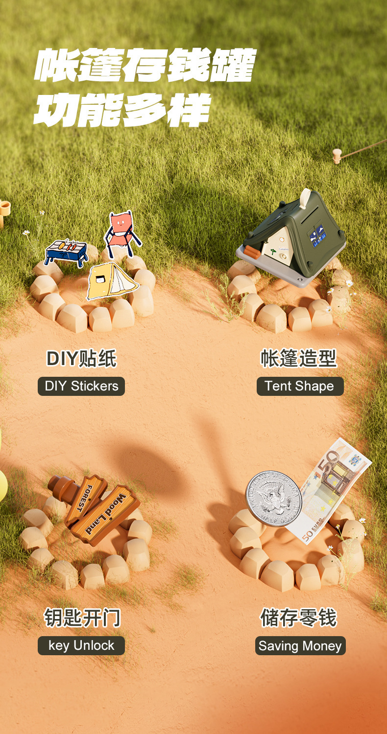 green tent coin bank [color box-with theme stickers]]