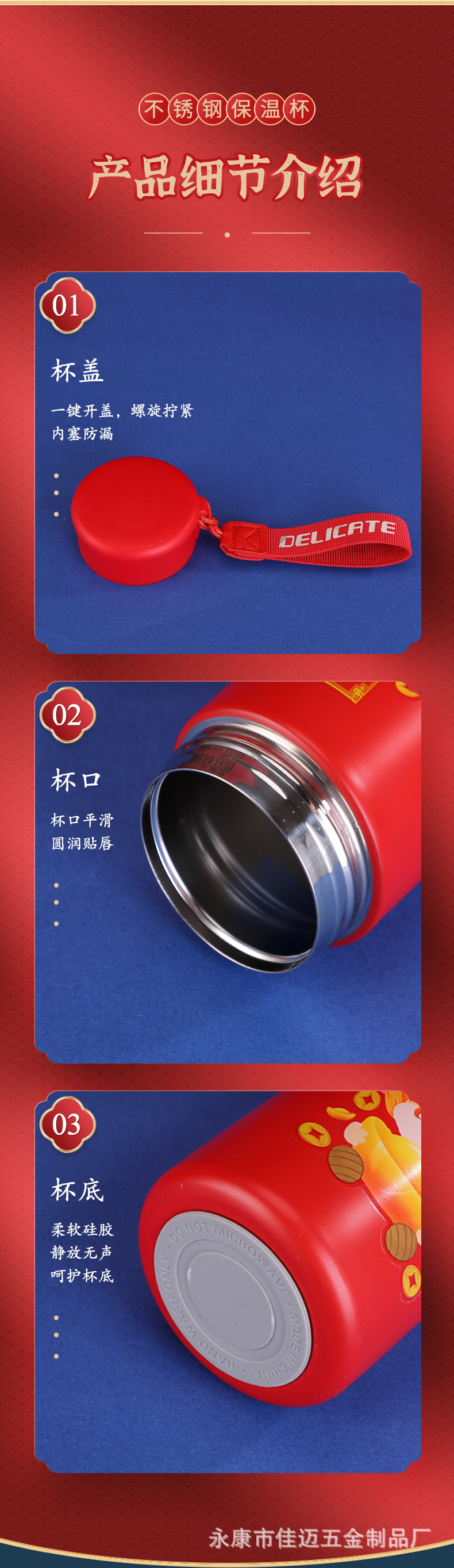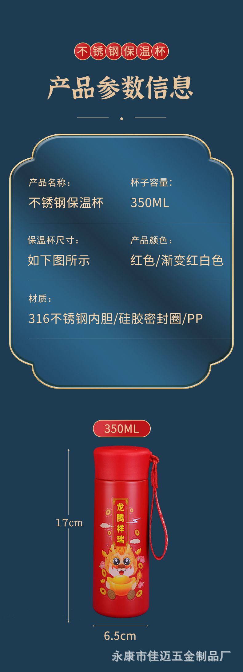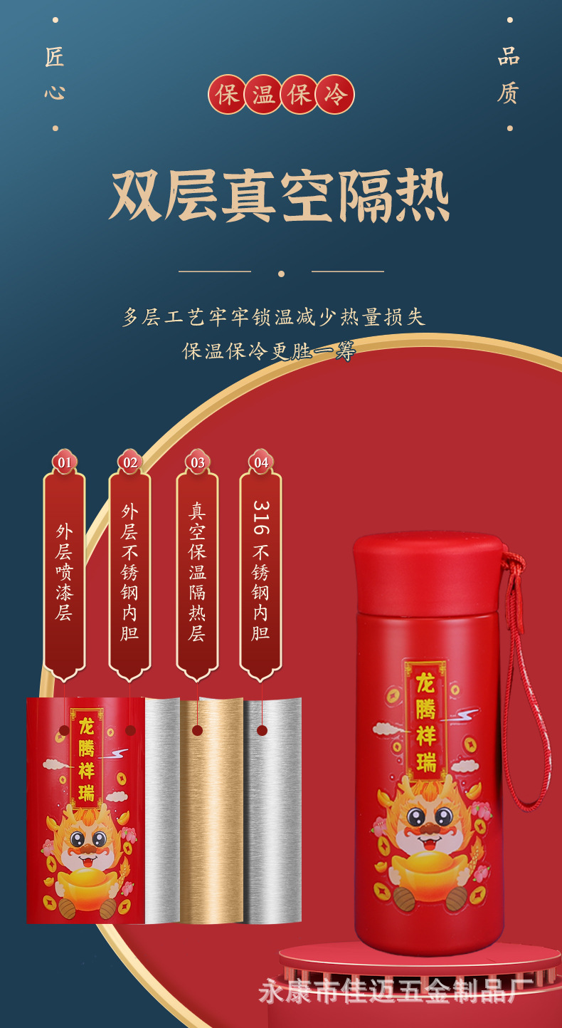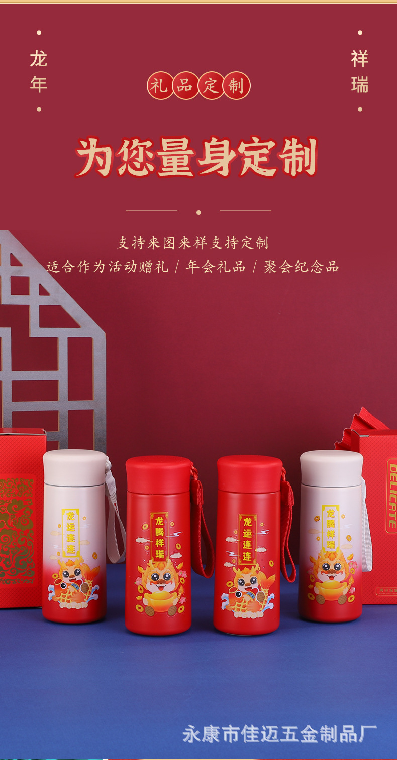 New Year's New National Fashion 316 Stainless Steel Vacuum Cup Open Door Red Annual Meeting Advertising Gift Cup New Year Dragon Year Cup