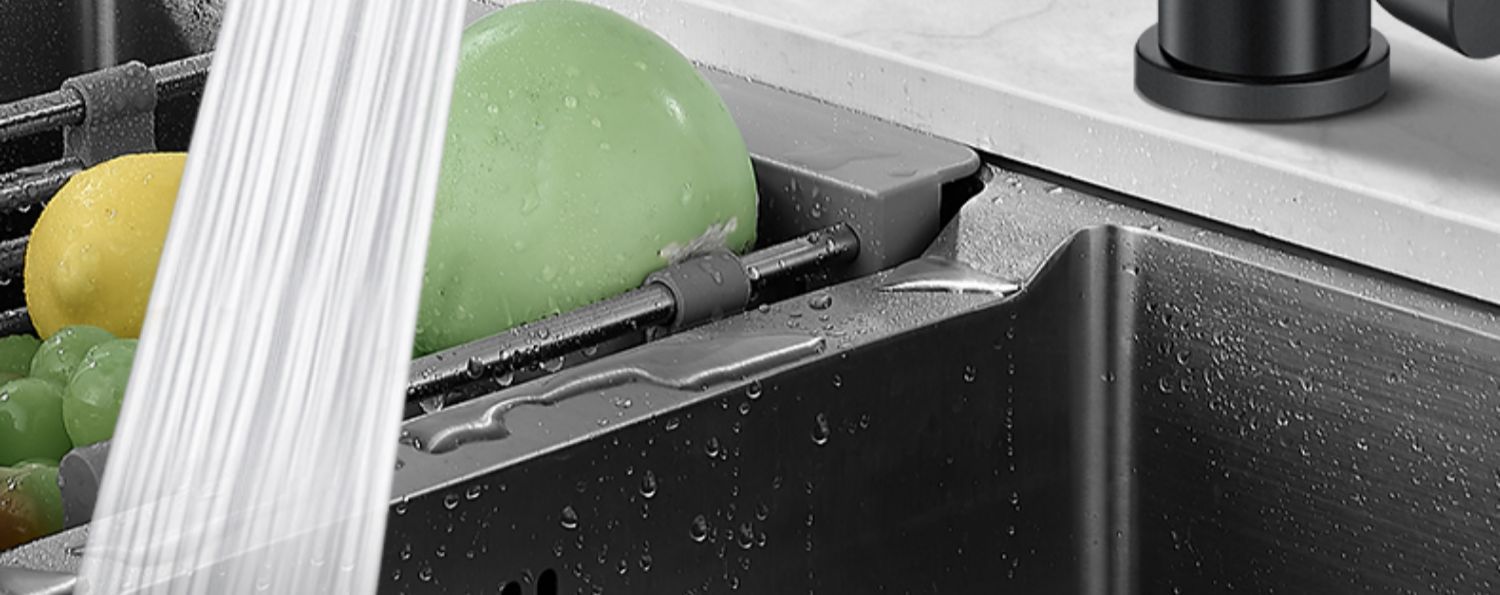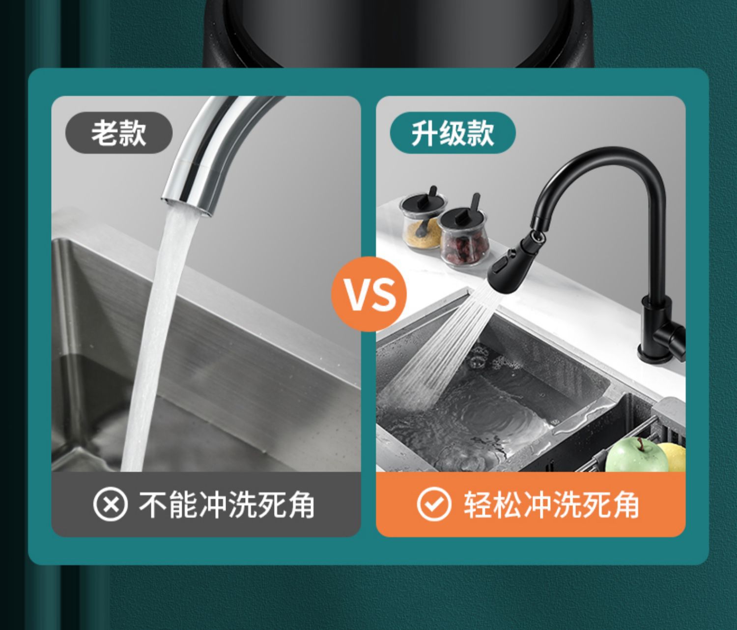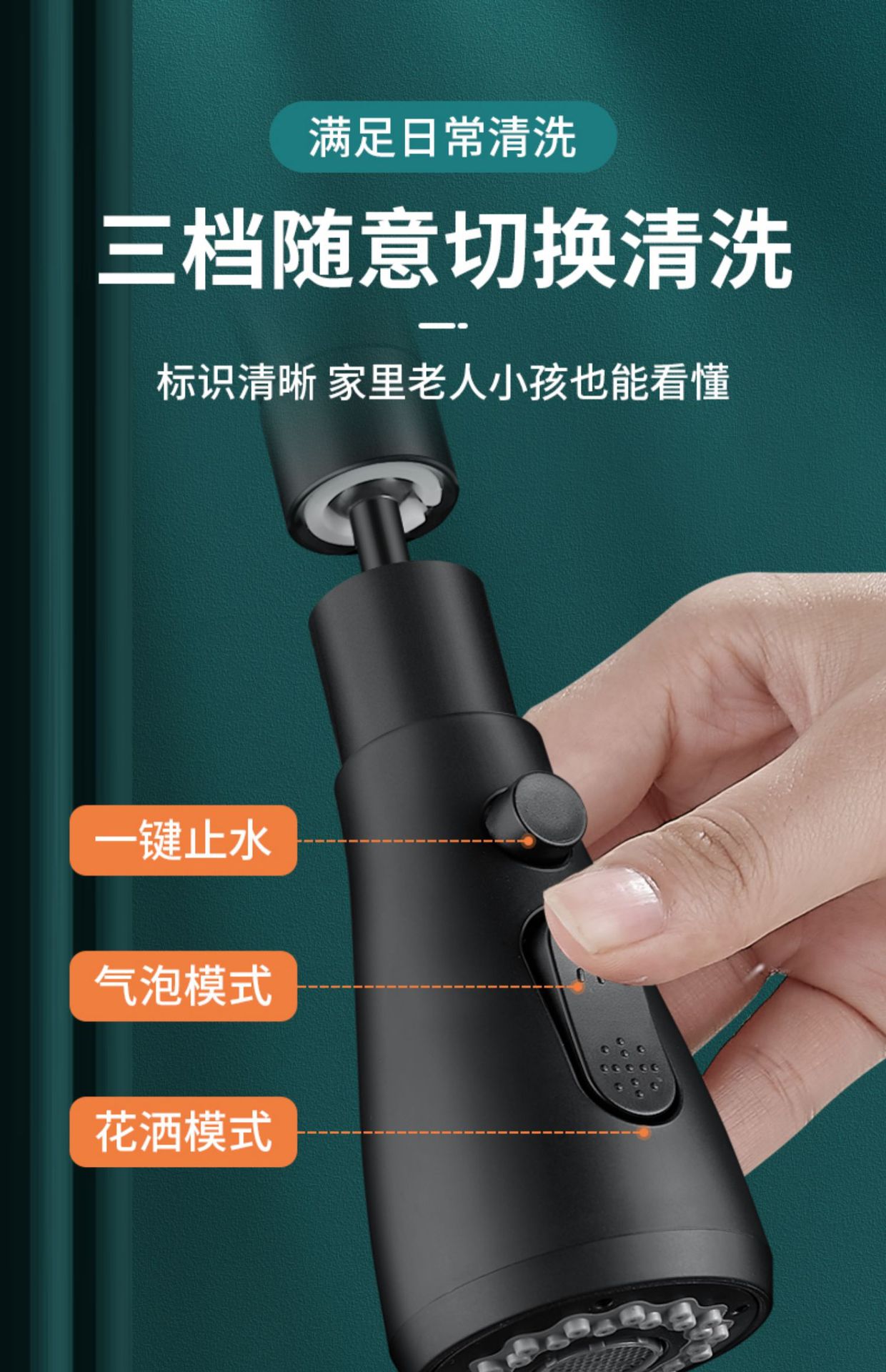 standard water outlet – 360-degree rotation ● boost pressure with splash guard (waterfall black)