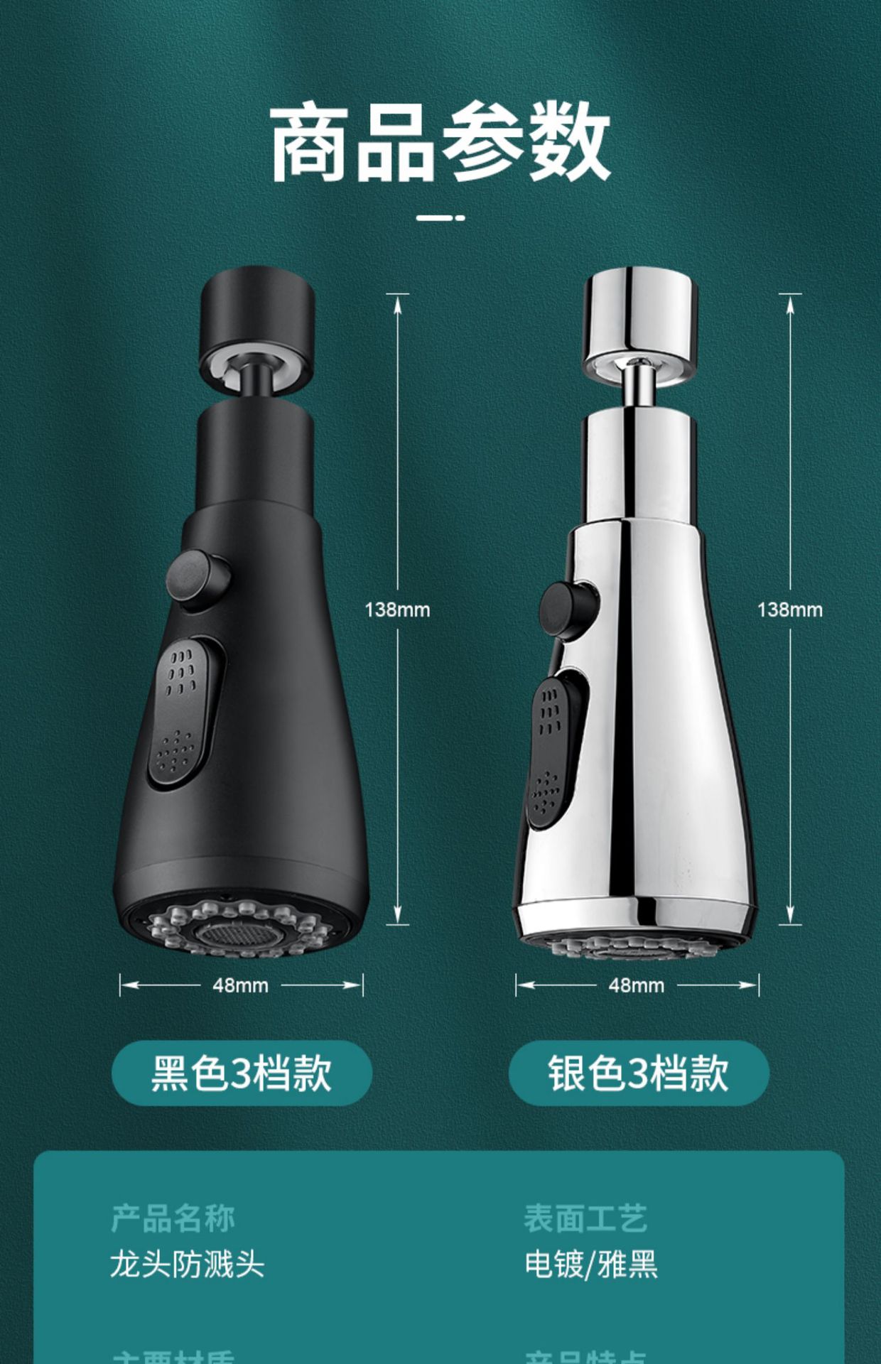 ordinary water outlet-360 degrees rotation ● supercharged splash-proof (silver electroplated)