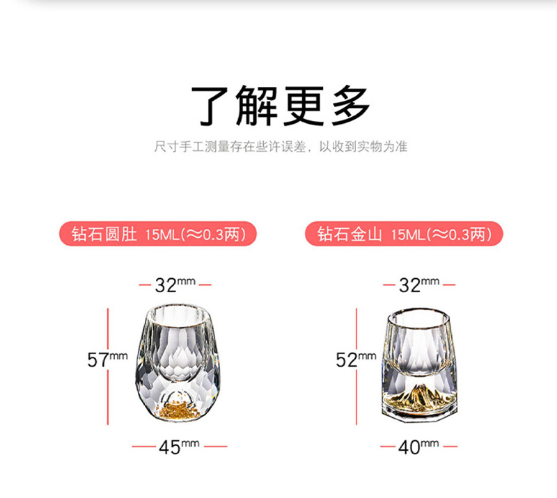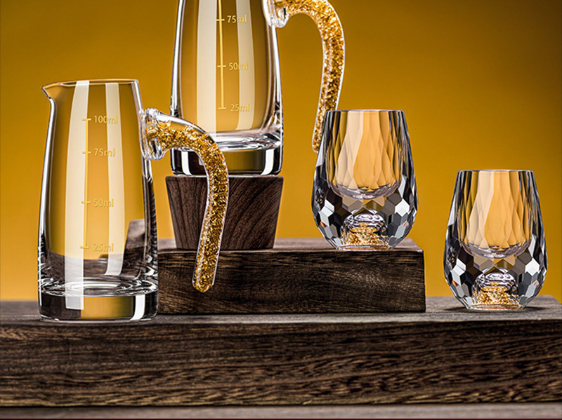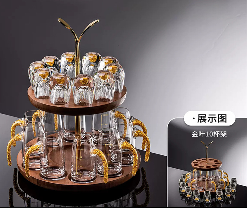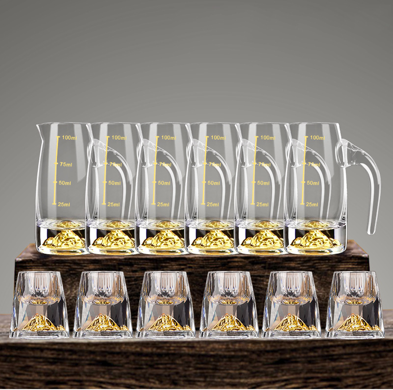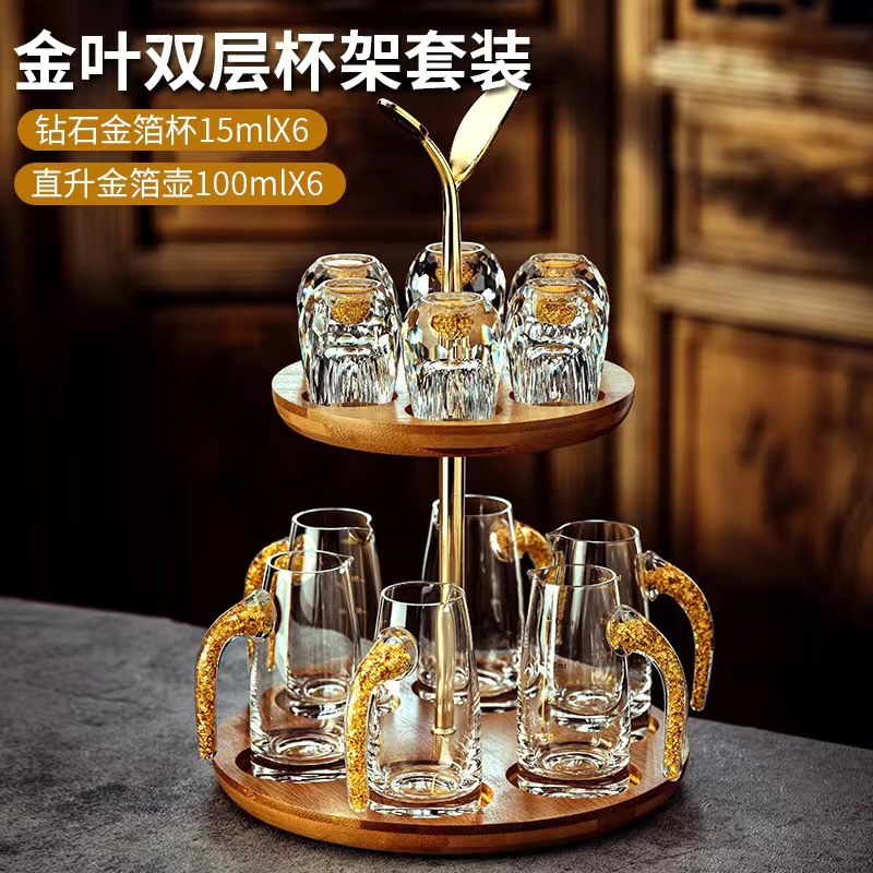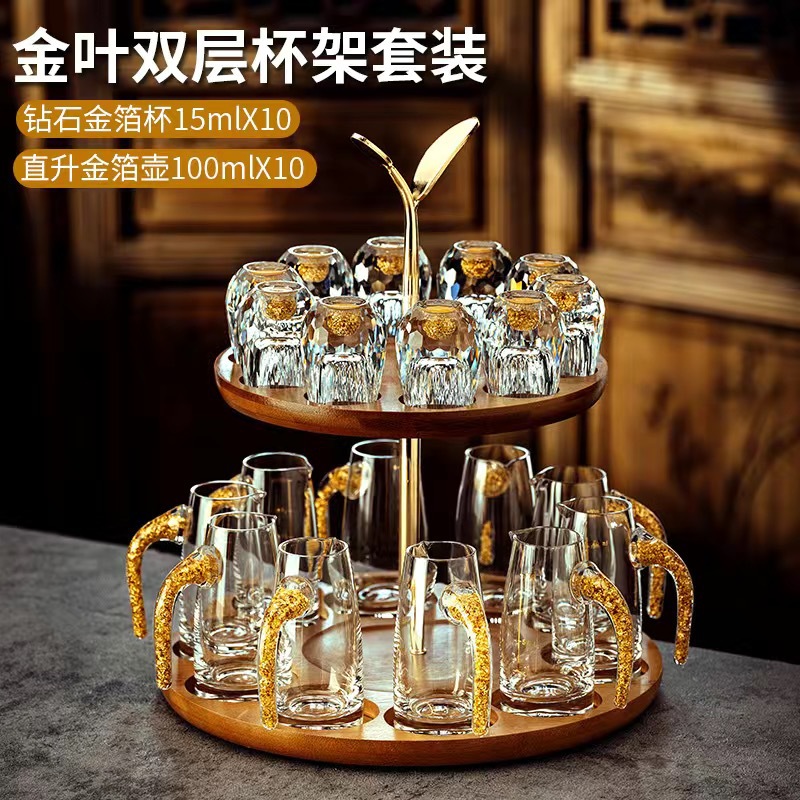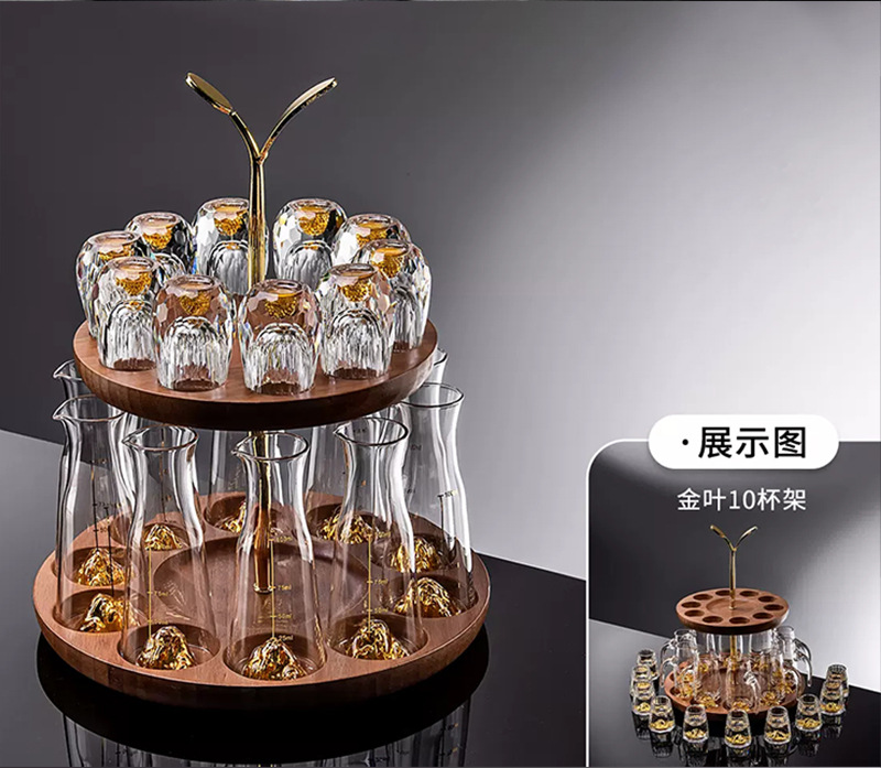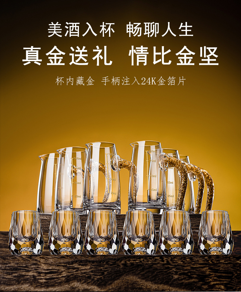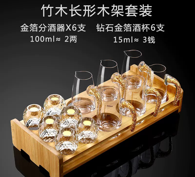 6 pcs 100ml gold foil pot +6 pcs diamond gold foil white wine glass + gold jade leaf