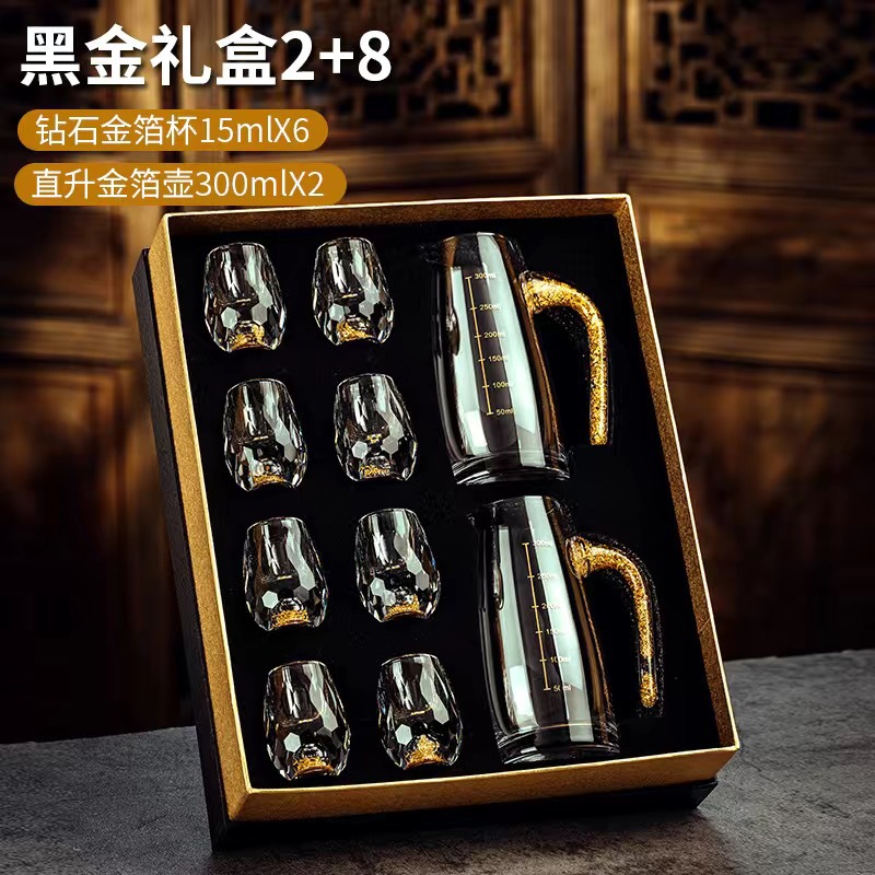 2 pcs 300ml gold foil pot +8 pcs diamond gold foil white wine glass + gift box