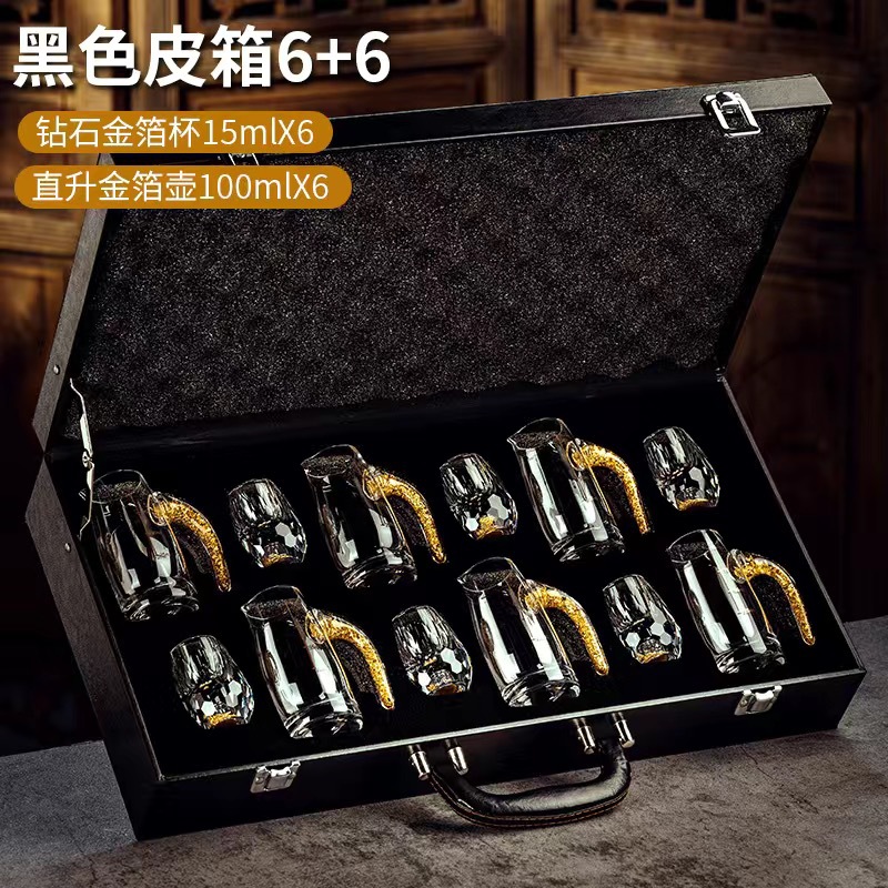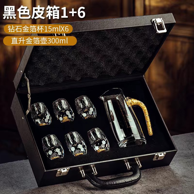 6 pcs 100ml gold foil pot +6 pcs diamond gold foil white wine glass + leather box