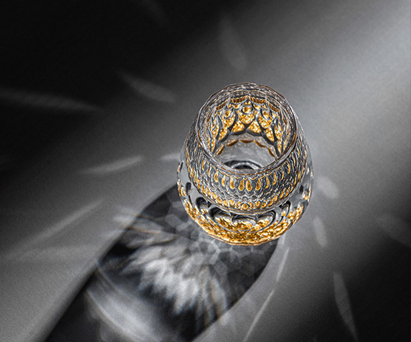 single 300ml gold foil pot +6 diamond gold foil white wine glass