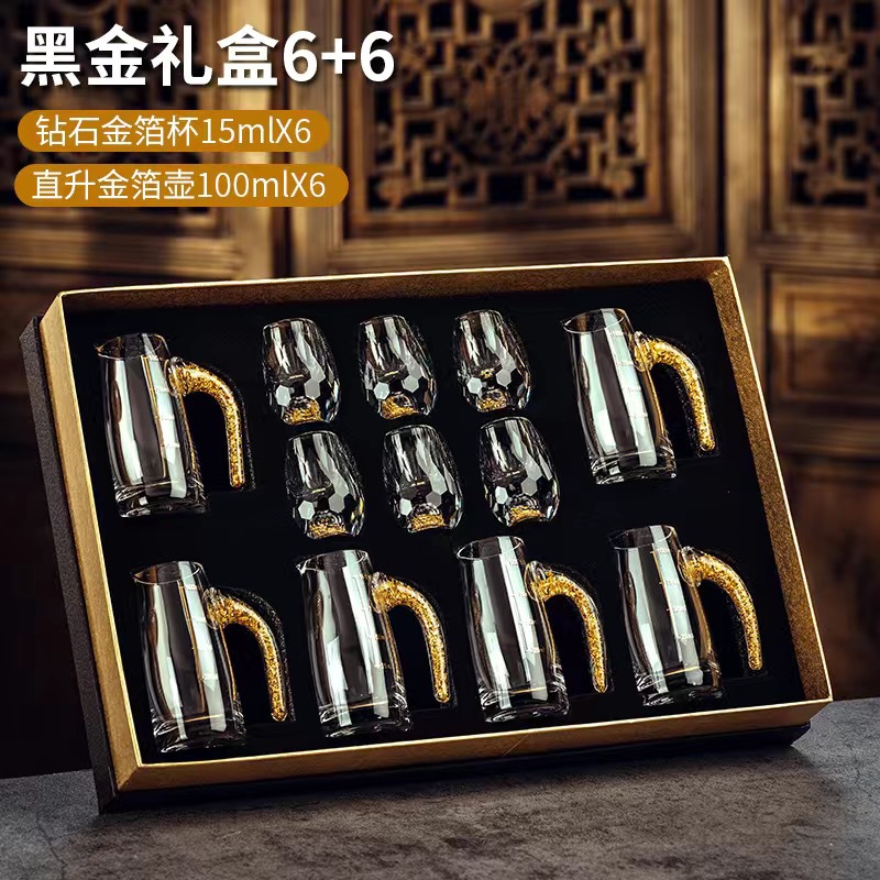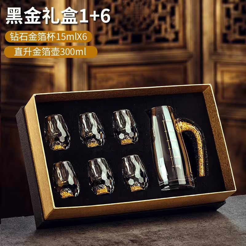 6 pcs 100ml gold foil pot +6 pcs diamond gold foil white wine glass + gift box