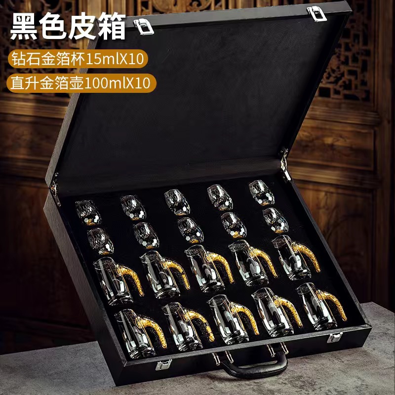 10 pcs 100ml gold foil pot +10 pcs diamond gold foil white wine glass + leather box